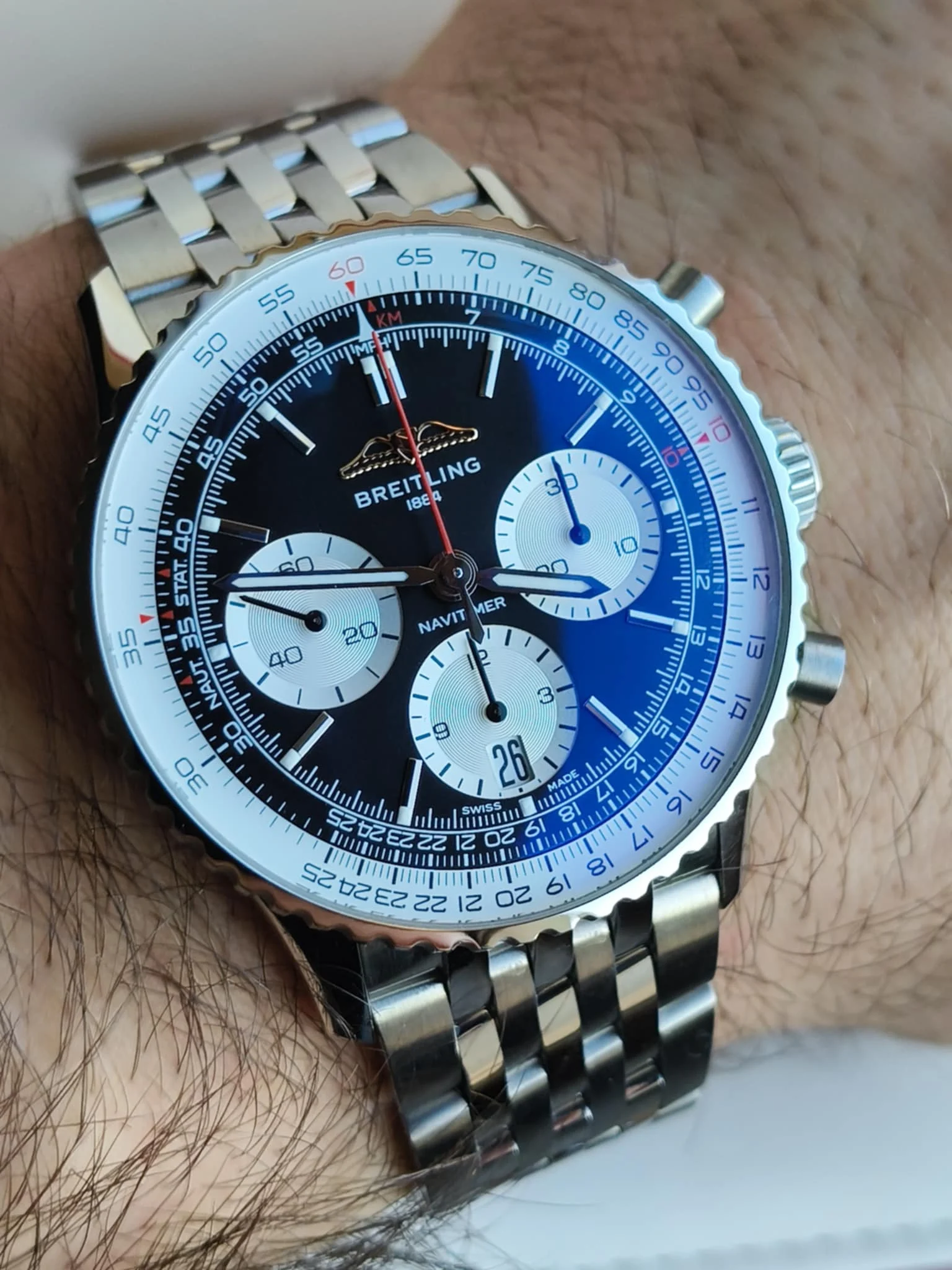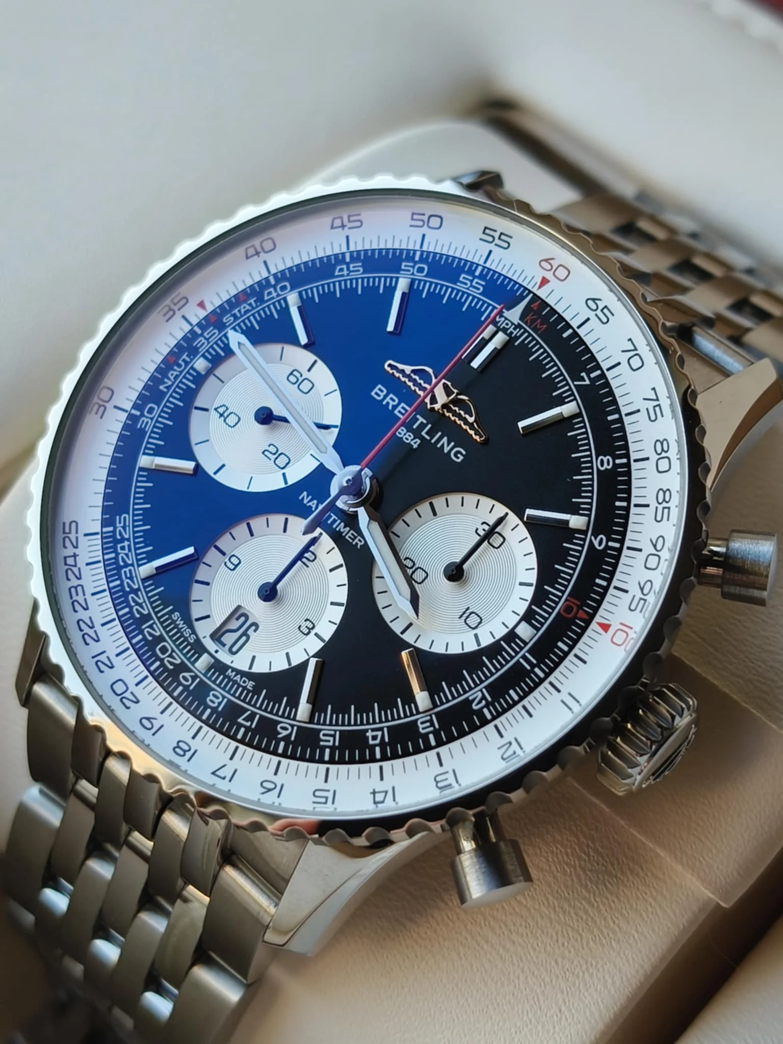 The Breitling Navitimer B01 Chronograph 41 AB0139211G1A1 is a true icon of aviation watches. Its 41mm stainless steel case houses the advanced, COSC-certified in-house B01 movement. The white dial with three subdials and the distinctive logarithmic slider create a recognizable, technical look. This iconic feature allows pilots to perform complex navigation calculations directly on their wrist. A sapphire crystal with double anti-reflective coating ensures excellent readability in all conditions. Water resistance to 30 meters and a classic steel bracelet complete the look of this iconic timepiece. This is a timeless watch for aviation and precision engineering enthusiasts who appreciate a wealth of functions and historical heritage.