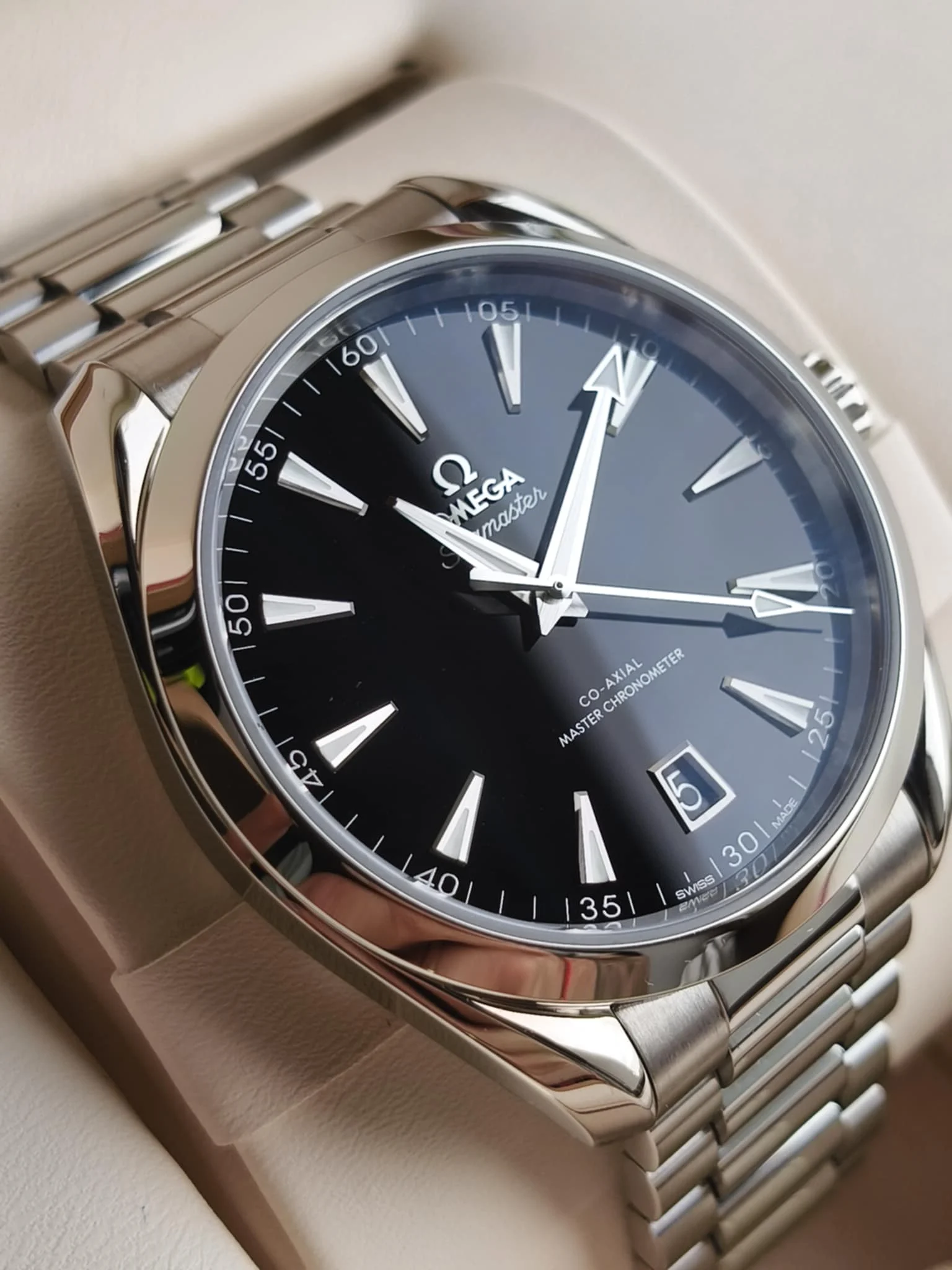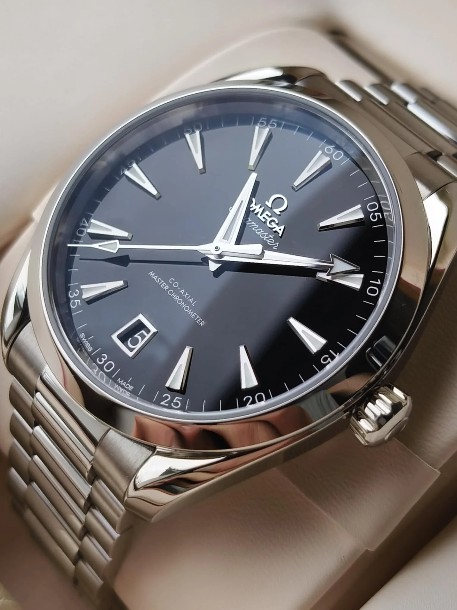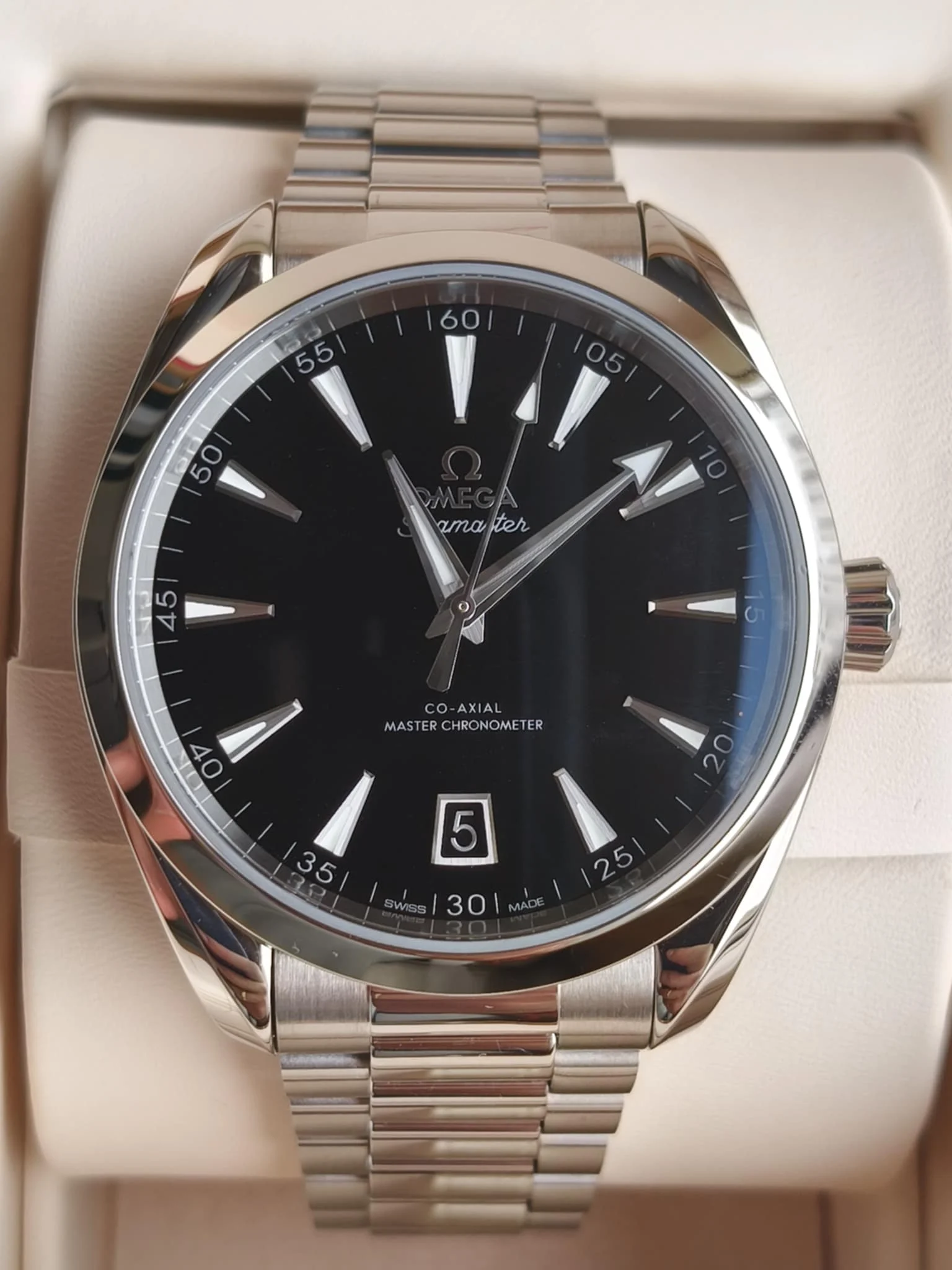 The Omega Seamaster Aqua Terra 220.10.41.21.01.002 is a sophisticated example of how top-notch watchmaking can meet modern elegance and sportiness. This model belongs to the acclaimed Aqua Terra collection, which was created for people looking for the perfect balance between the element of water and everyday urban style. This is a watch for those who value sophisticated aesthetics, but do not want to give up functionality and precision – regardless of the circumstances. The watch is distinguished by a 41mm case made of polished and brushed stainless steel, whose proportions and lines fit perfectly on the wrist, emphasizing its modern yet timeless character. The latest one unveiled with a black smooth dial. The delicate arrow-shaped hands and indices are coated with Super-LumiNova® for excellent readability in the dark. A subtle date window at six o’clock introduces visual symmetry and order, while maintaining full functionality. At the heart of this model is the prestigious Omega Master Chronometer Calibre 8900 movement, certified by METAS. Thanks to the use of Co-Axial technology and anti-magnetic components (up to 15,000 gauss), the movement offers not only exceptional precision, but also resistance to everyday shocks and magnetic fields. The power reserve is as much as 60 hours, which makes it the perfect companion for long days – also outside the office. The watch offers water resistance up to 150 meters (15 bar), and the screw-down crown and sapphire case back overlooking the ornate movement emphasize the luxurious yet technically advanced character of the model. The stainless steel bracelet with elegantly contoured links guarantees comfortable wearing and a perfect fit on the wrist. The Omega Seamaster Aqua Terra 220.10.41.21.01.002 is the perfect watch for a modern man – self-confident, active and aware of his style. It combines the worlds of land and water, classics and innovation, creating a timeless symbol of elegance with a maritime soul.