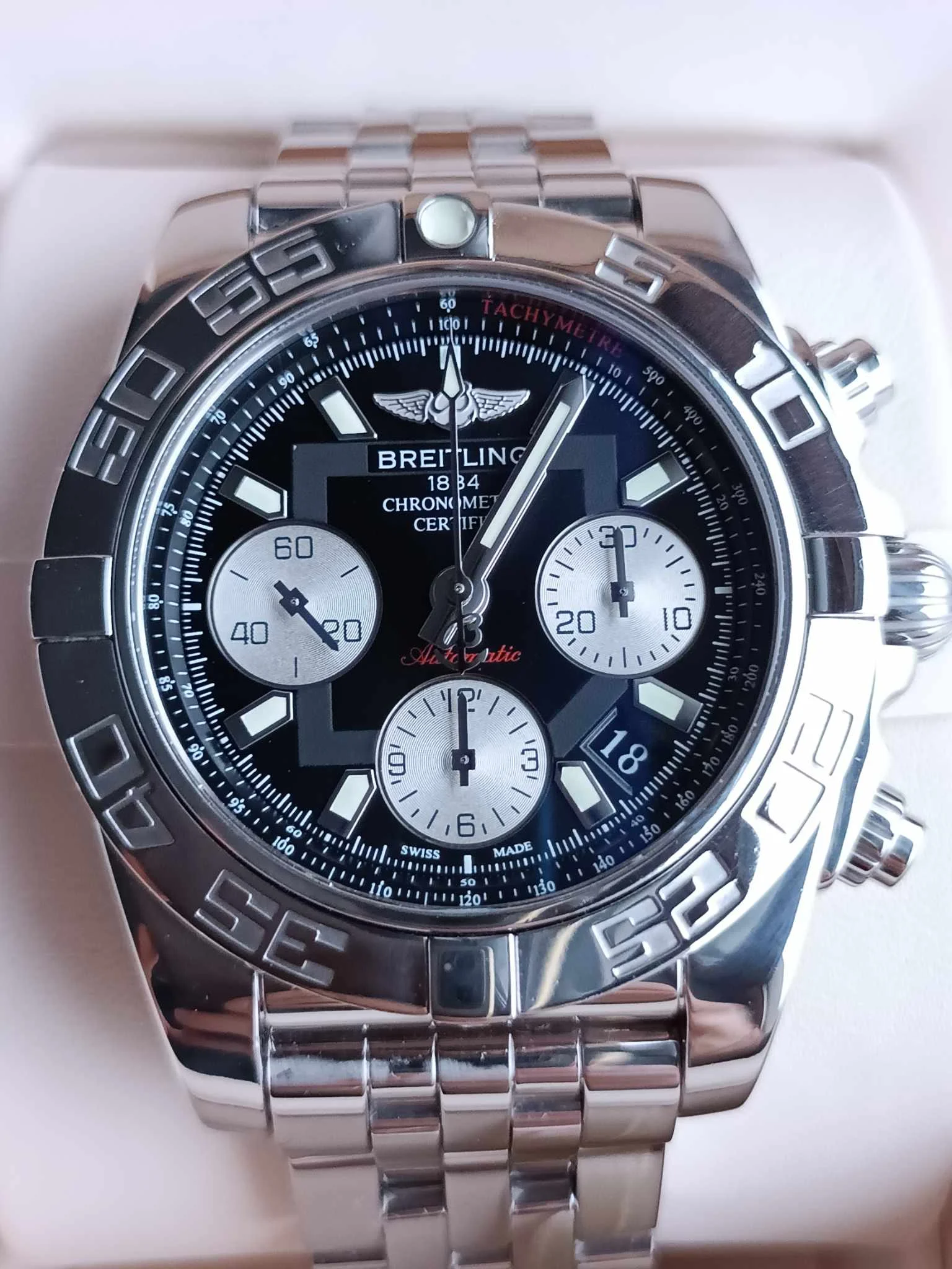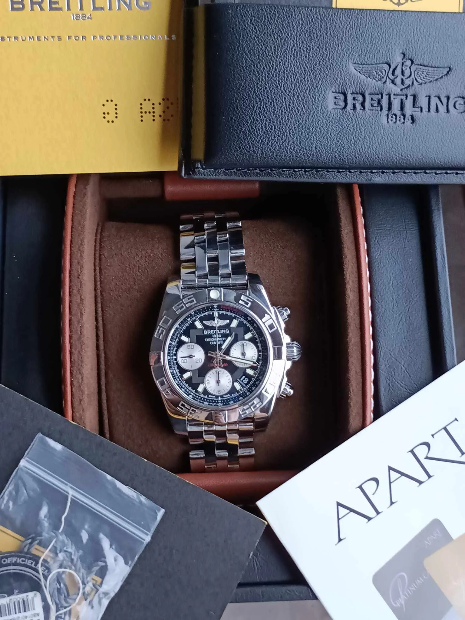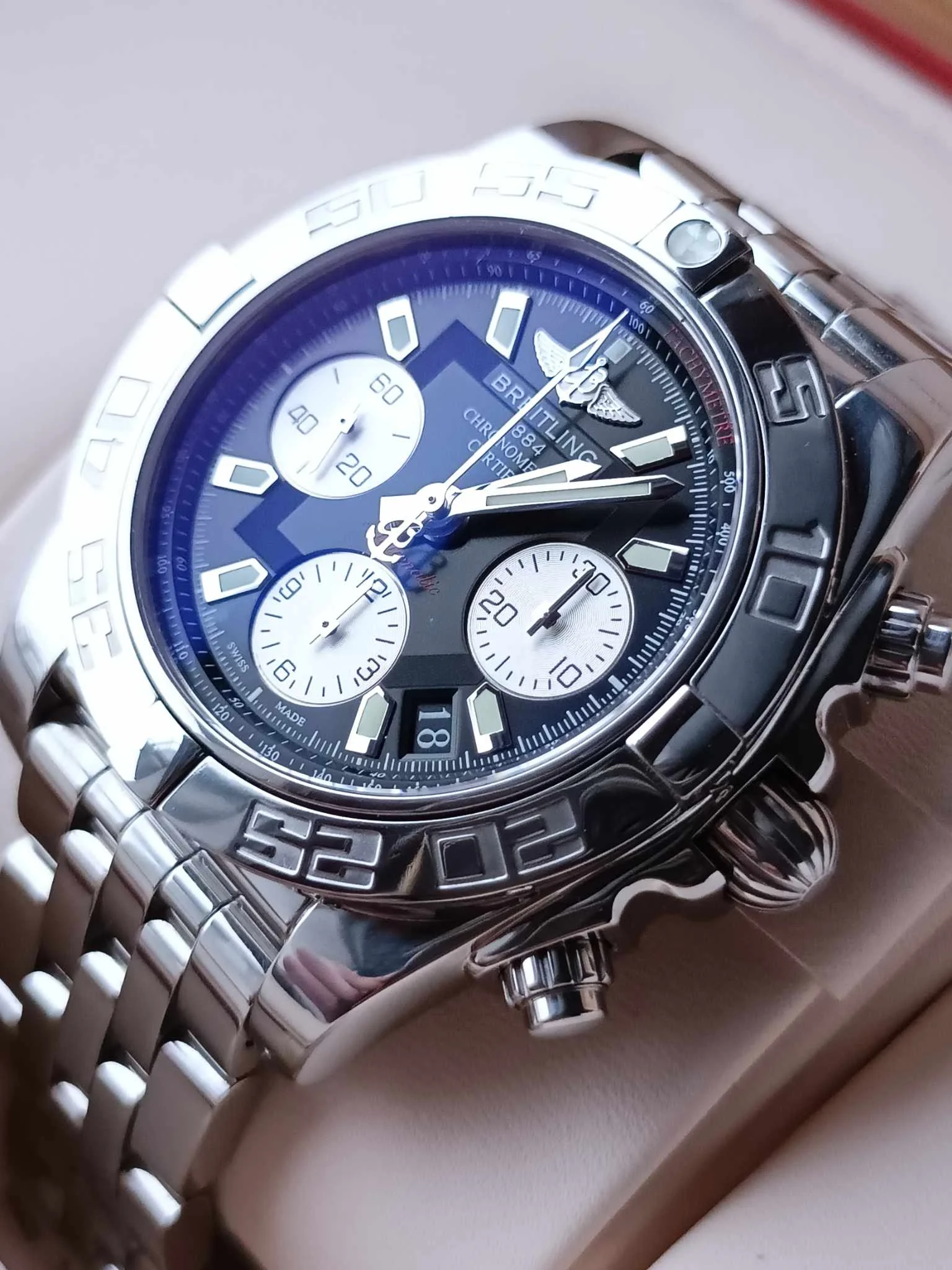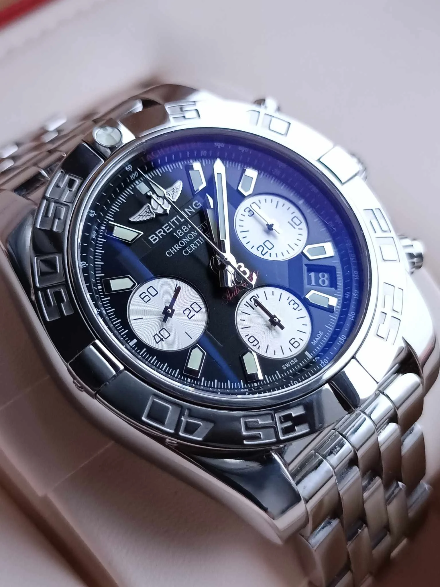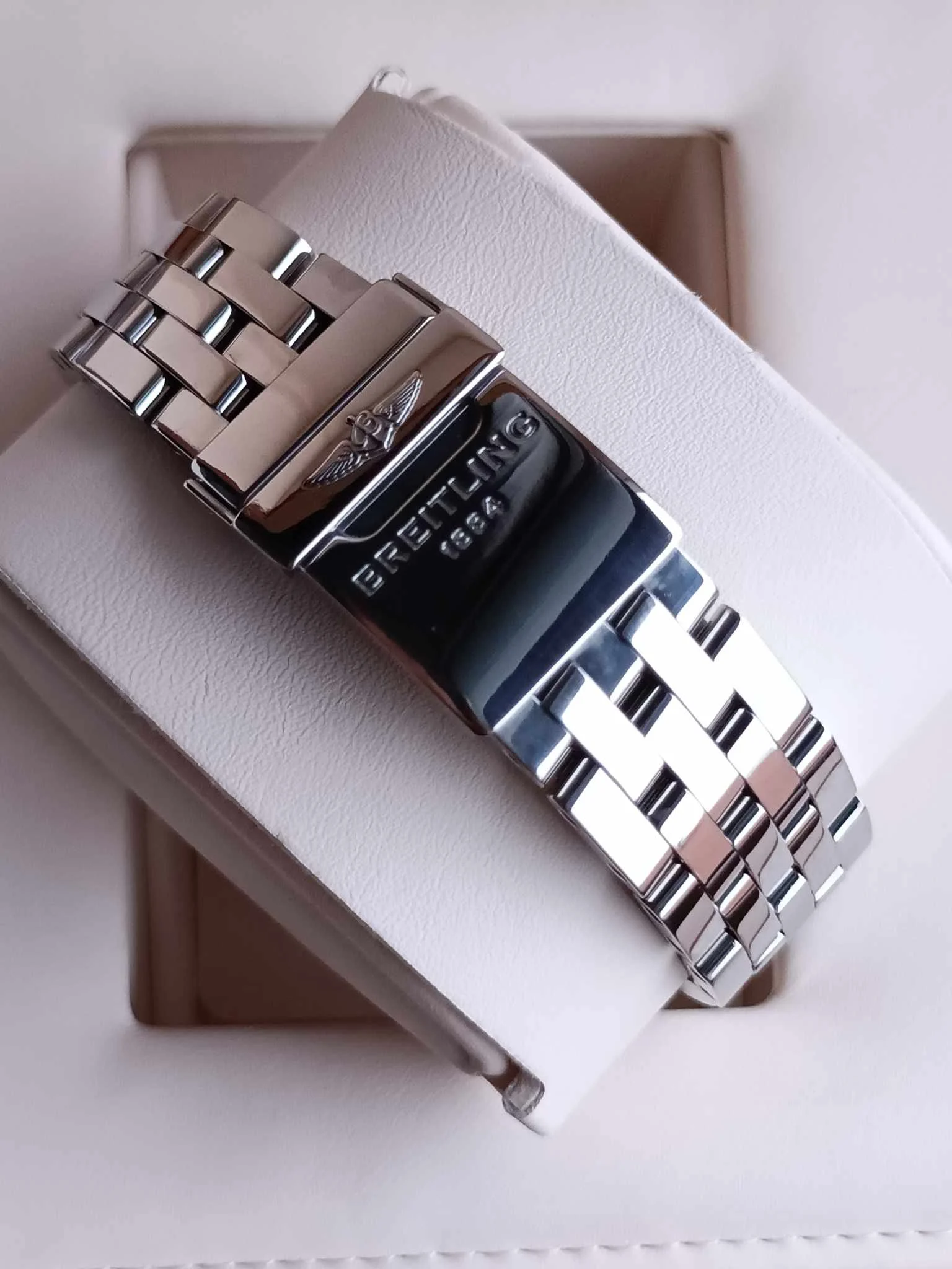 The Breitling Chronomat AB014012-BA52 is the quintessence of an aviation watch in a classic edition. The dynamic 41 mm stainless steel case hides an advanced COSC-certified chronograph movement. The black dial with three white sub-dials creates a classic, contrasting look, ensuring excellent readability in all conditions. The characteristic rotating scope with four “riders” allows for precise measurement of flight time. Reinforced sapphire crystal with double anti-reflective coating guarantees uninterrupted time reading. Water resistance up to 300 meters and a sturdy steel bracelet ensure reliability during the most demanding missions. It is an iconic timepiece for aviation enthusiasts who value uncompromising functionality and recognizable design with a rich history.
