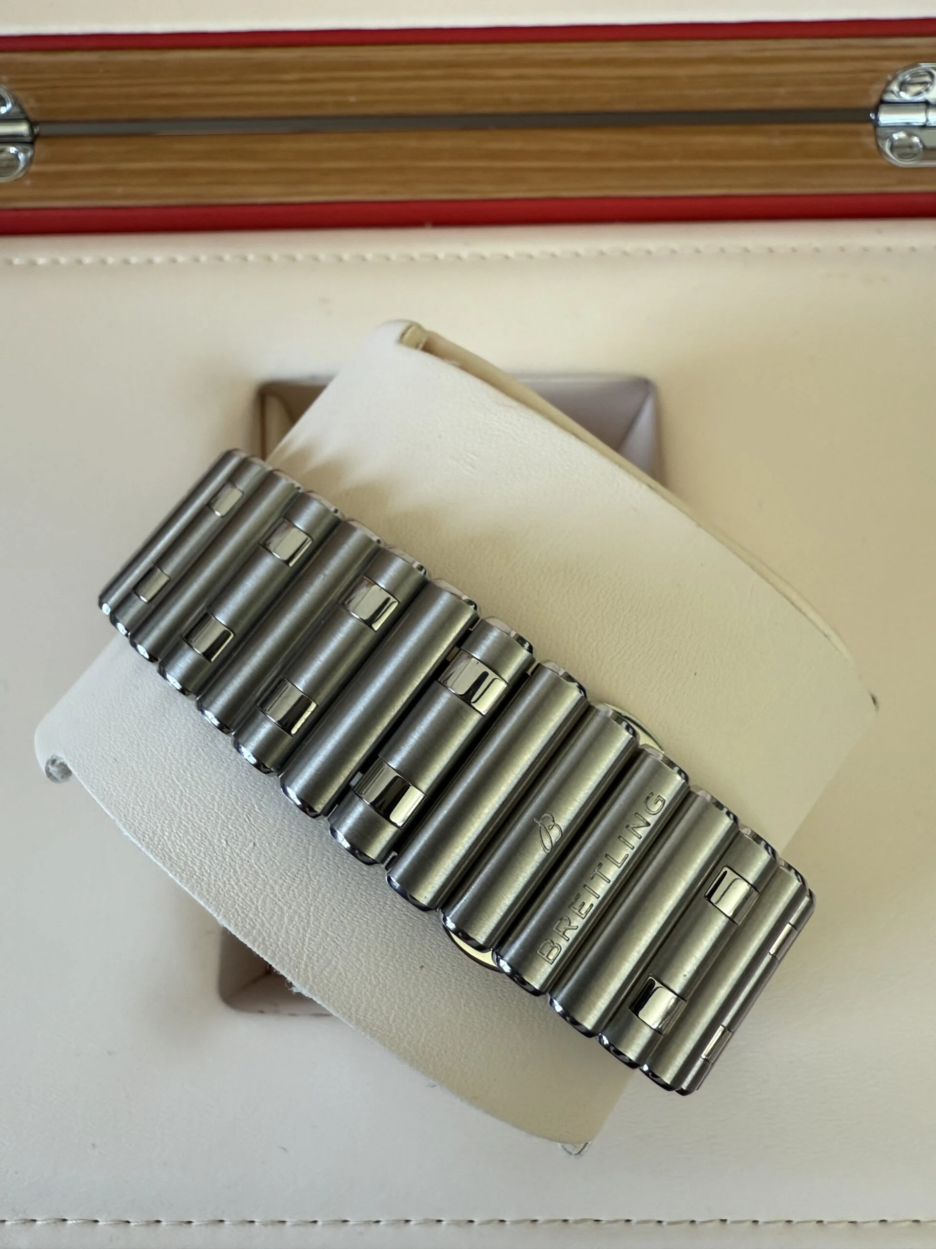 The Breitling Super Chronomat B01 44 AB0136251B1A2 is the embodiment of sporty elegance in monumental form. The impressive 44 mm stainless steel case hides an advanced B01 movement with COSC chronometer certification. Its standout feature—the built-in UTC module in Rouleaux’s signature bracelet—makes it both functional and unique. The reinforced sapphire crystal with double anti-reflective coating guarantees excellent readability of the indications. Water resistance up to 200 meters of this uncompromising timepiece. This is a proposal for people who want a distinctive, luxurious watch with a sporty character.
