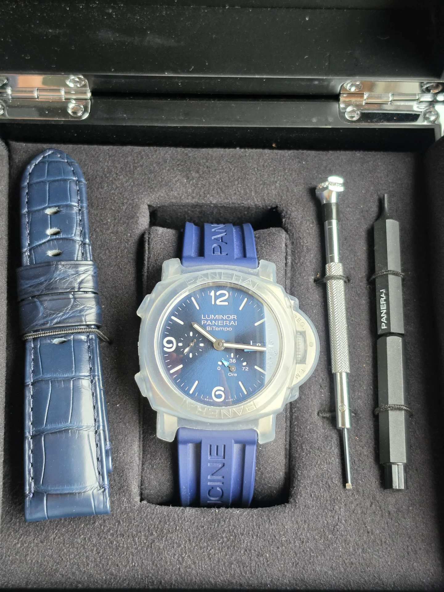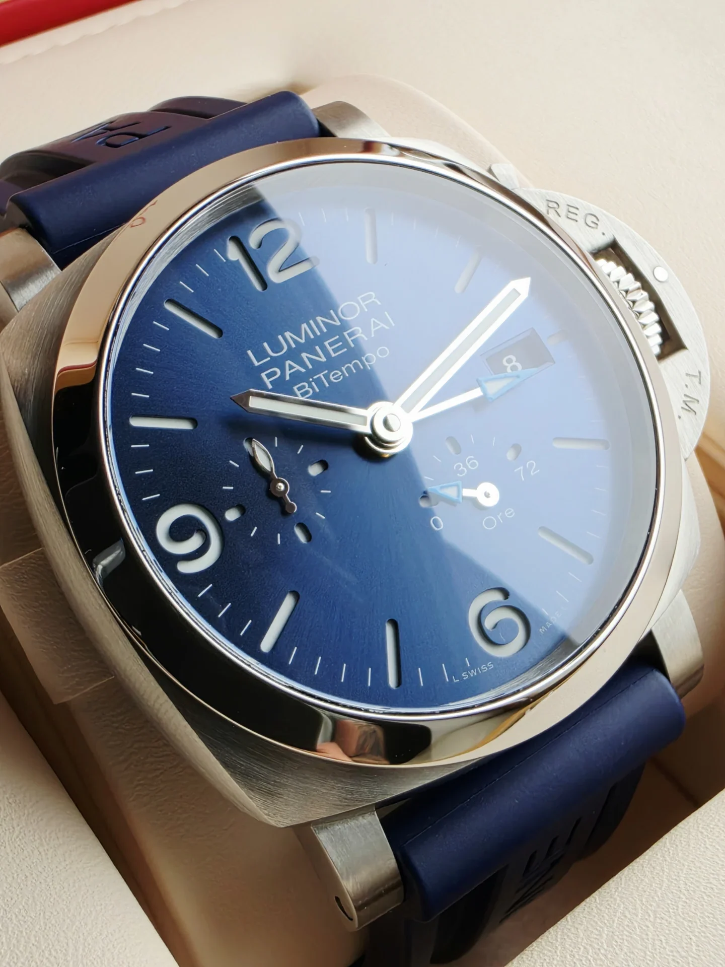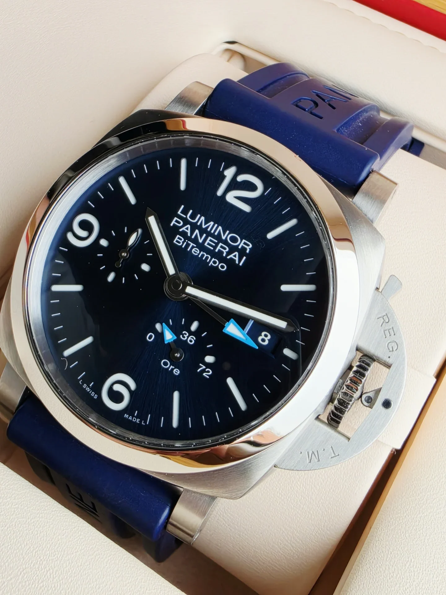 The Panerai Luminor GMT Power Reserve PAM01361 is a timepiece for the man seeking a distinctive watch with a strong character and practical features. Rugged, legible, and reliable—it represents a perfect blend of military heritage, GMT functionality, and modern technology, while standing as one of the most recognizable models in Panerai’s portfolio.