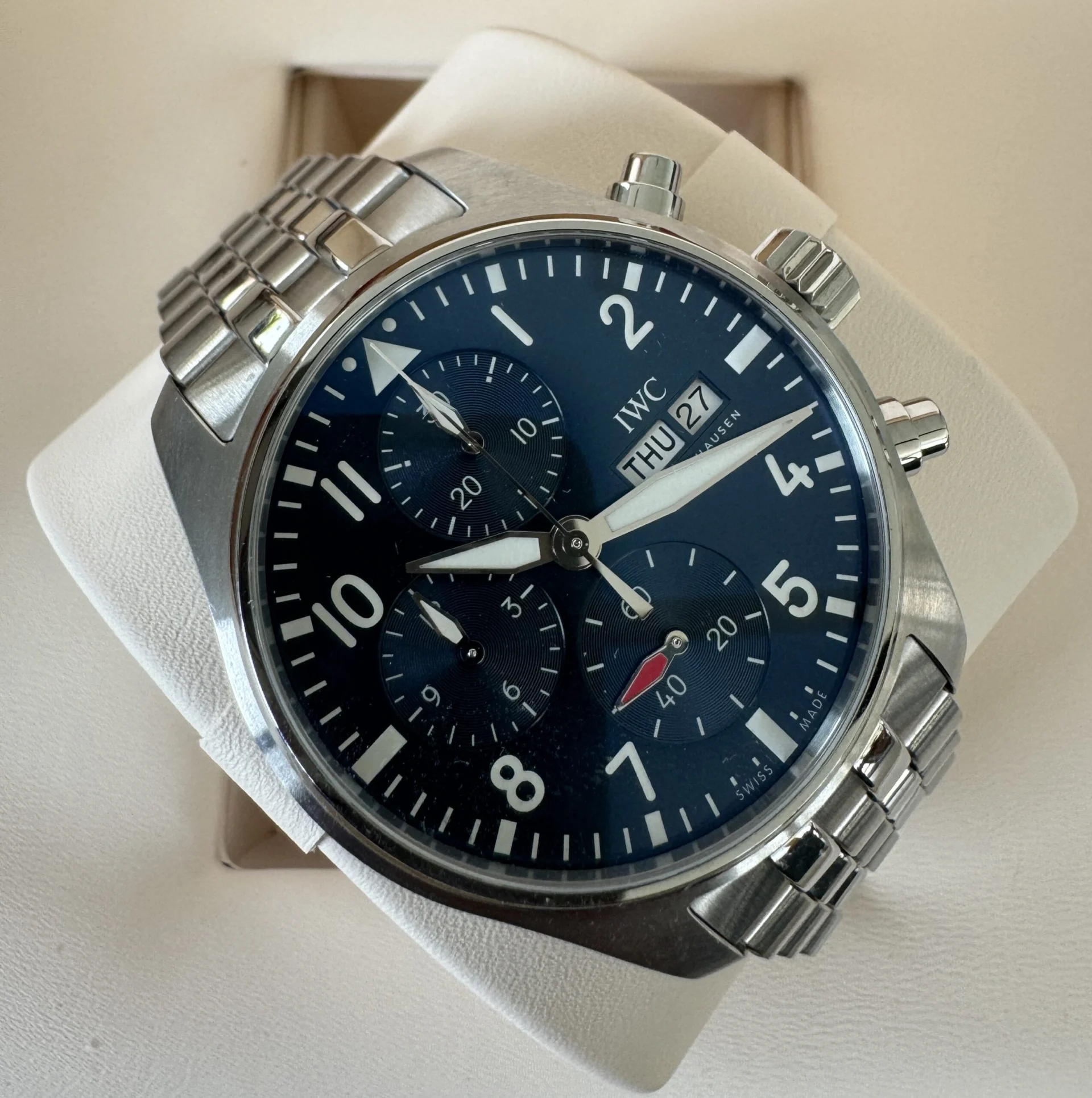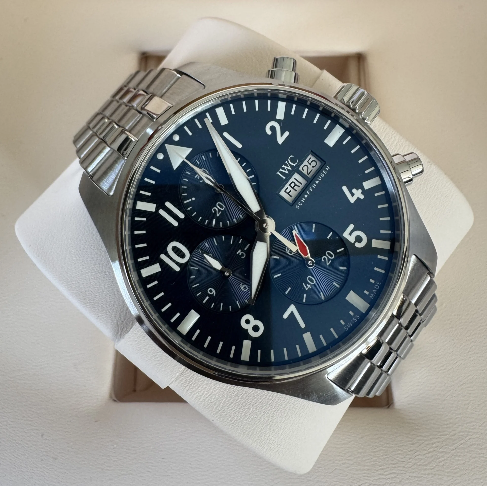This is not just a watch – it is a symbol of aviation watchmaking that has successfully transitioned from cockpits to the wrists of enthusiasts worldwide. Its monumental presence on the wrist, readable dial, and reliable movement make it one of IWC’s most recognizable models.