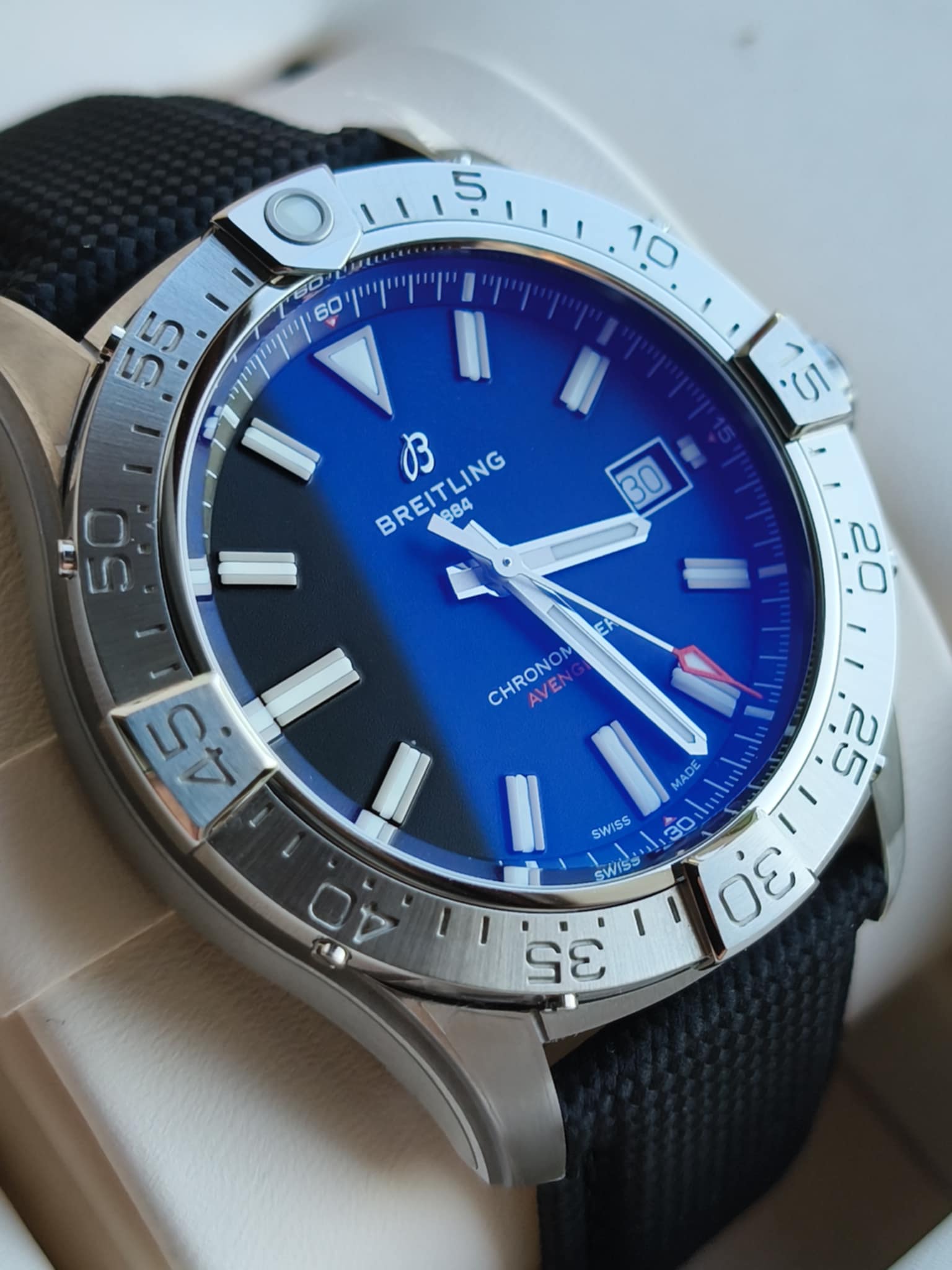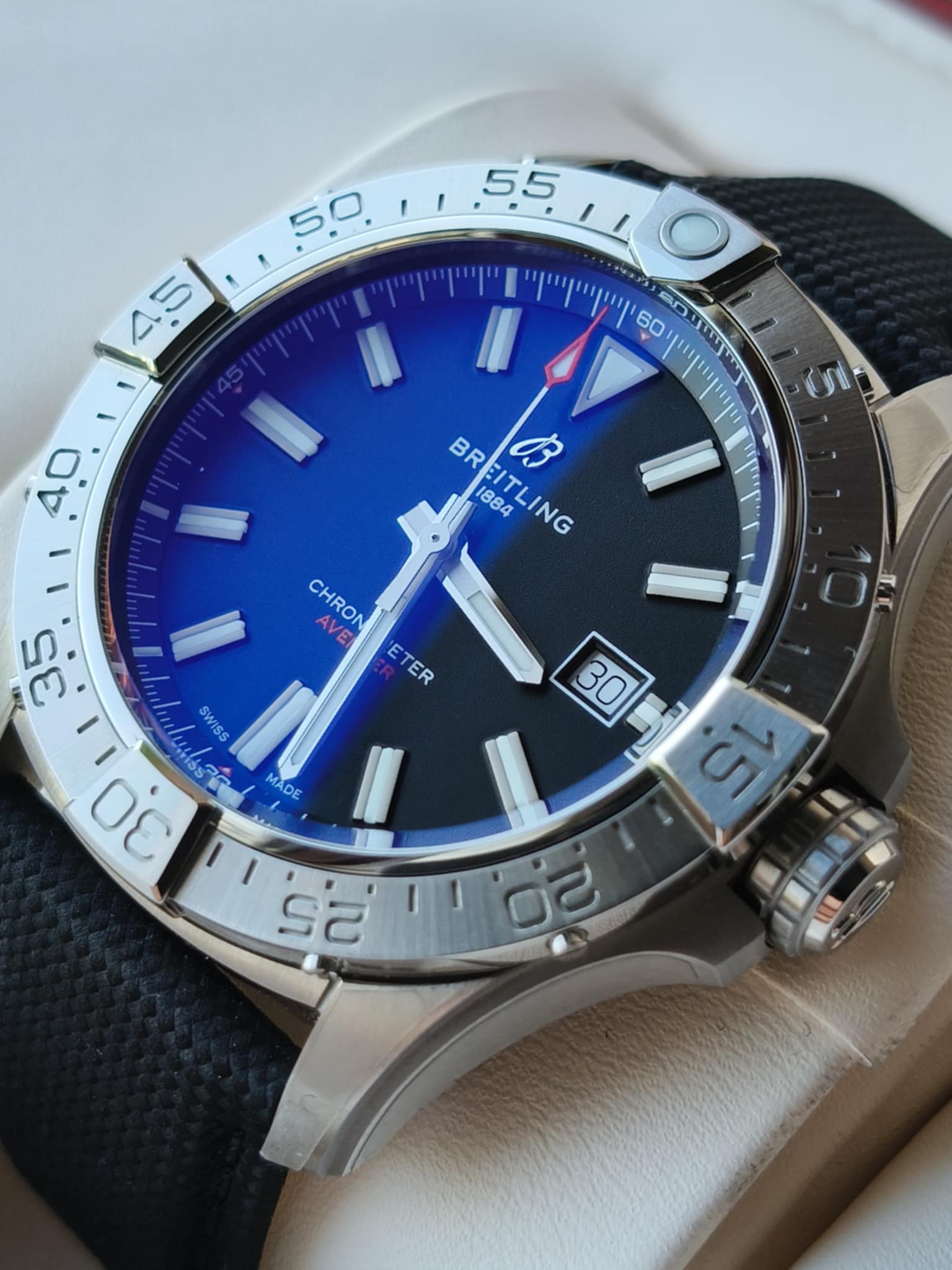 W środku pracuje certyfikowany przez COSC mechanizm Breitling Calibre 17 z około 38-godzinną rezerwą chodu, a wodoodporność do 300 m sprawia, że Avenger świetnie sprawdza się nie tylko w powietrzu, ale i pod wodą.