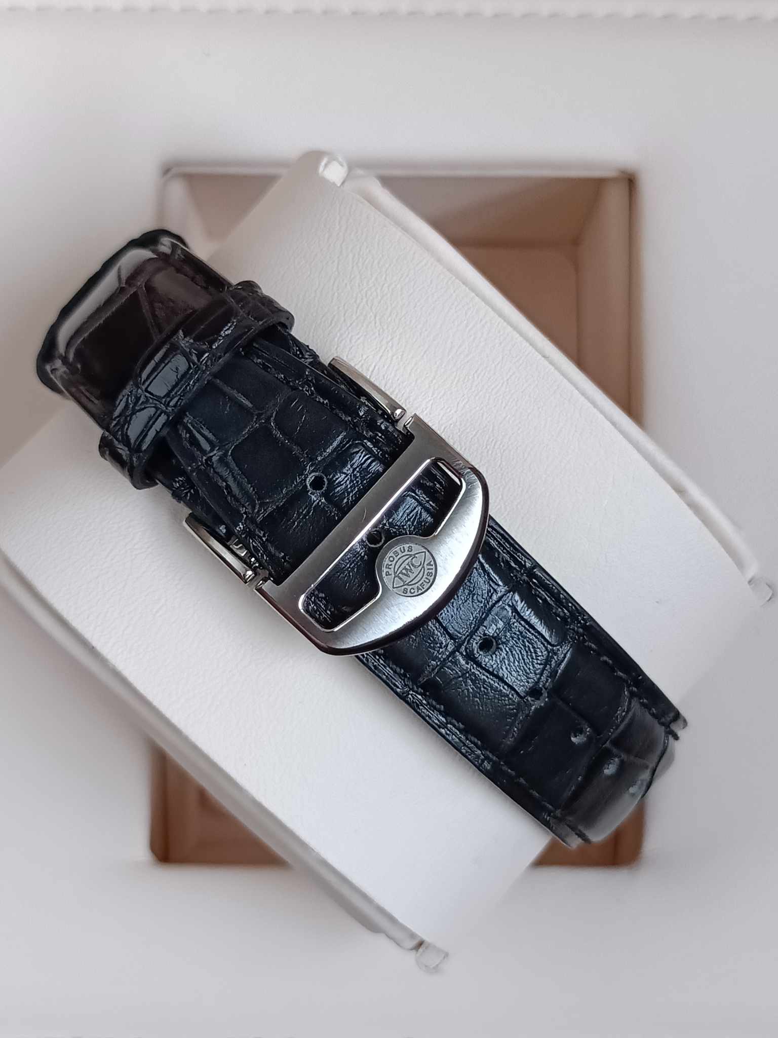 gwarantuje najwyższą precyzję pomiaru czasu. Czarny pasek ze skóry