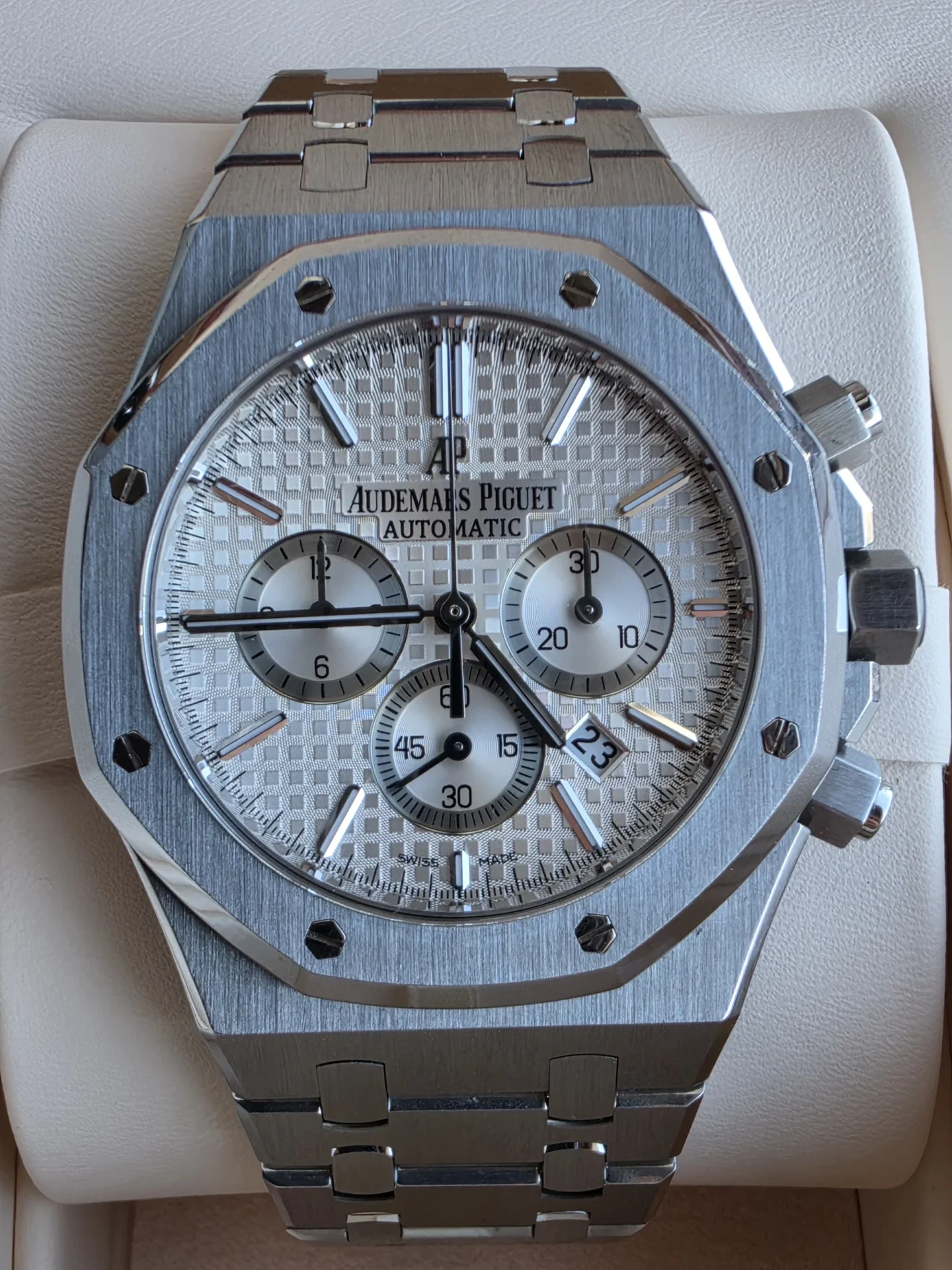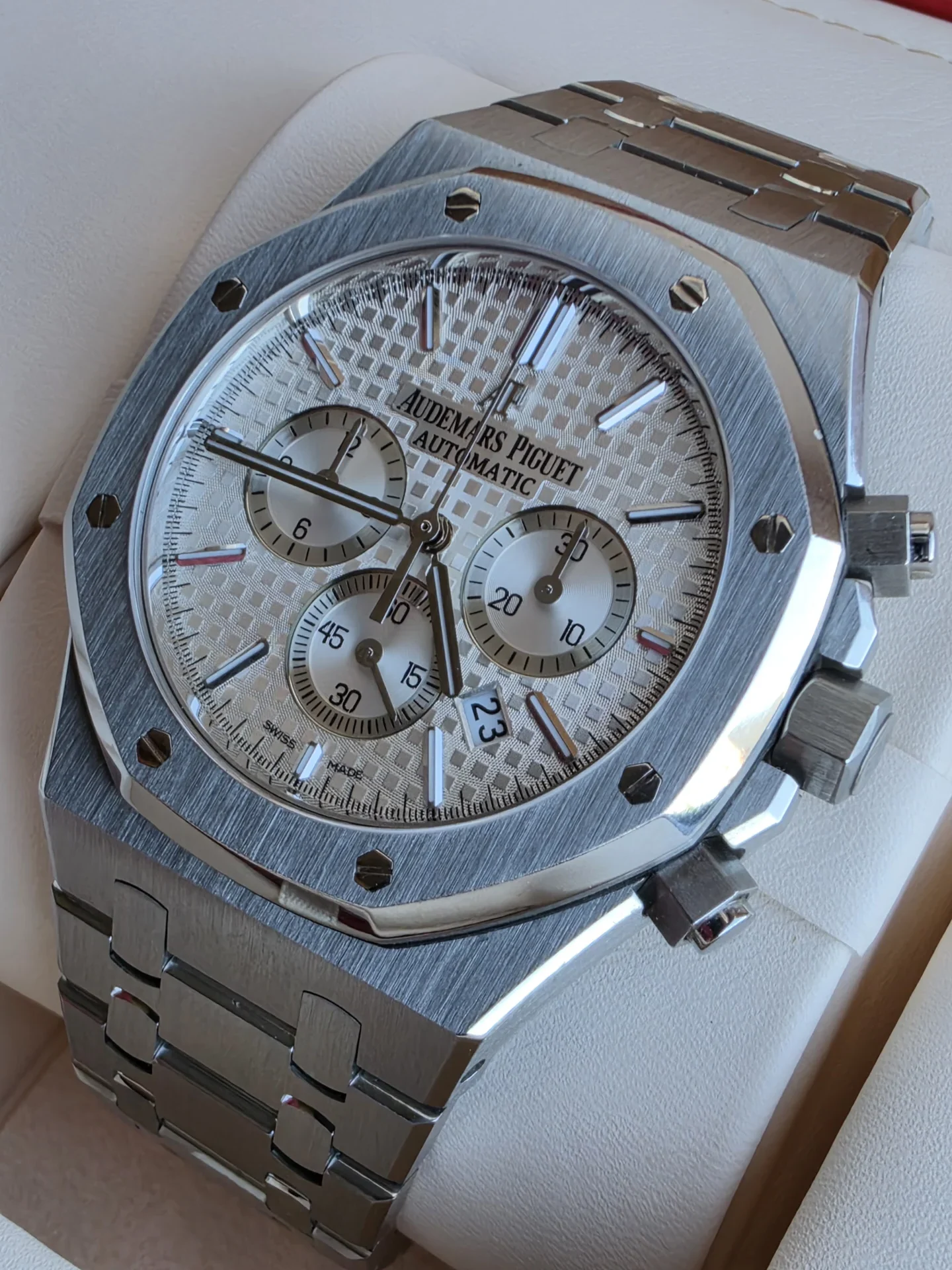 Audemars Piguet Royal Oak Chronograph 26320ST.OO.1220ST.02 to propozycja dla osób, które poszukują czegoś więcej niż tylko czasomierza — to manifest stylu, historii i innowacji. Zegarek, który doskonale balansuje między sportową energią a elegancką formą, pozostając jednym z najbardziej rozpoznawalnych i pożądanych modeli w świecie haute horlogerie.