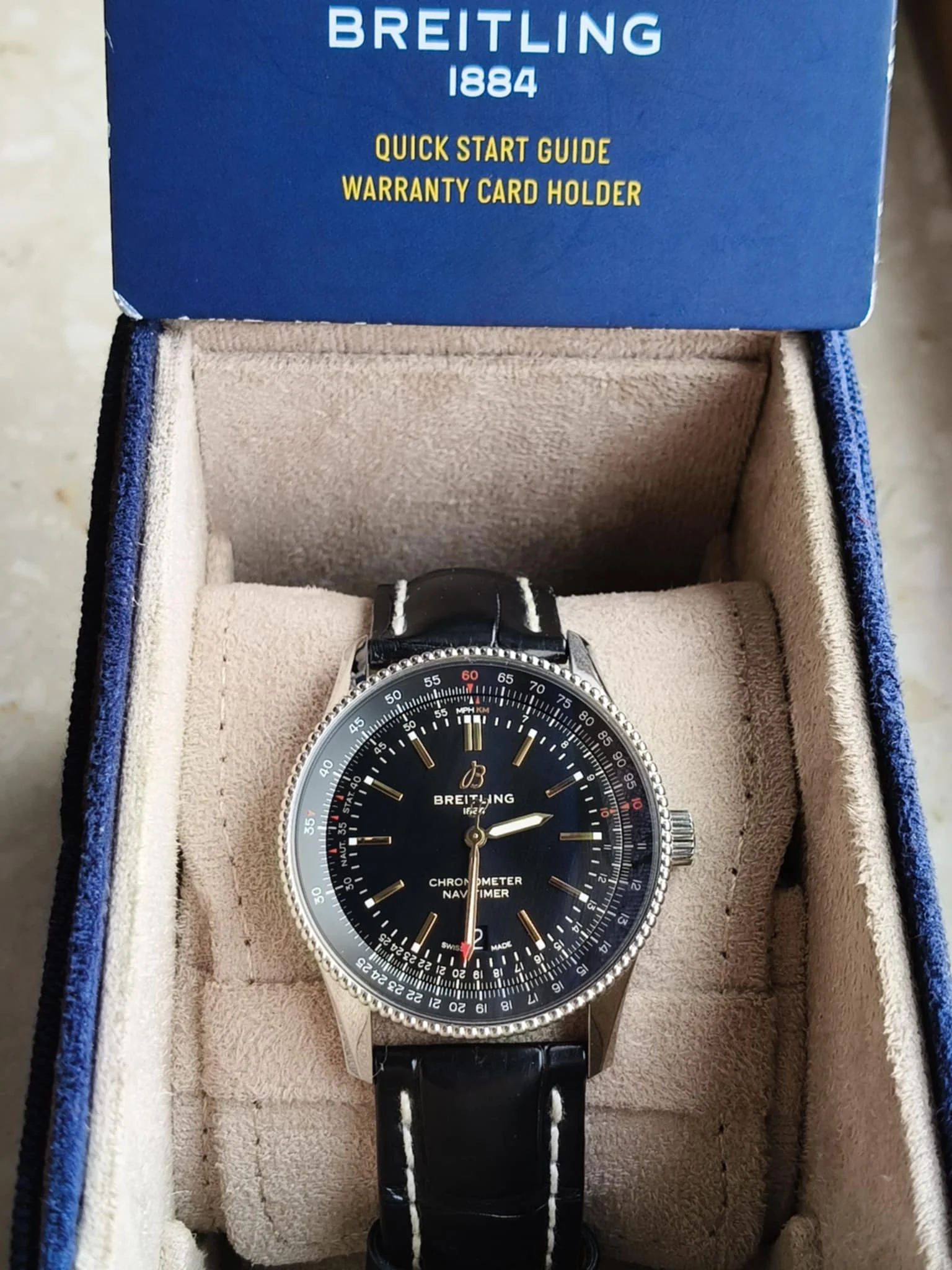 Koperta o średnicy 41 mm została wykonana z wysokiej jakości stali szlachetnej, zachowując charakterystyczne dla Navitimera proporcje oraz wyrafinowane wykończenie łączące powierzchnie polerowane i szczotkowane. Smukły profil i harmonijne linie sprawiają, że zegarek doskonale układa się na nadgarstku, pozostając jednocześnie wyrazistym elementem stylizacji. Wodoszczelność do 30 m podkreśla jego elegancko-instrumentalny charakter.