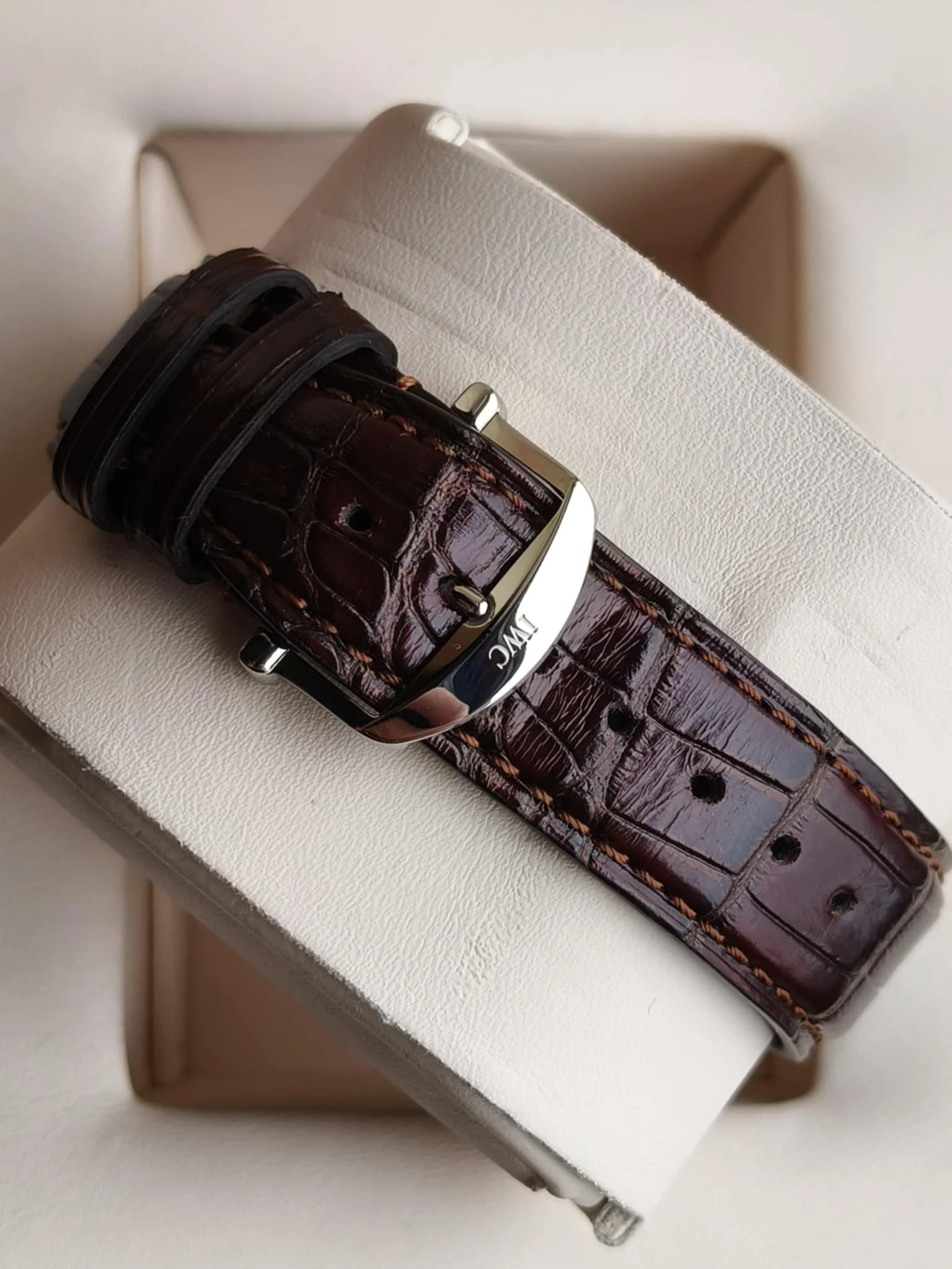 Model jest osadzony na wysokiej jakości pasku ze skóry aligatora wykonanym przez prestiżowego producenta Santoni, który podkreśla elegancki charakter zegarka i zapewnia komfort noszenia przez cały dzień.