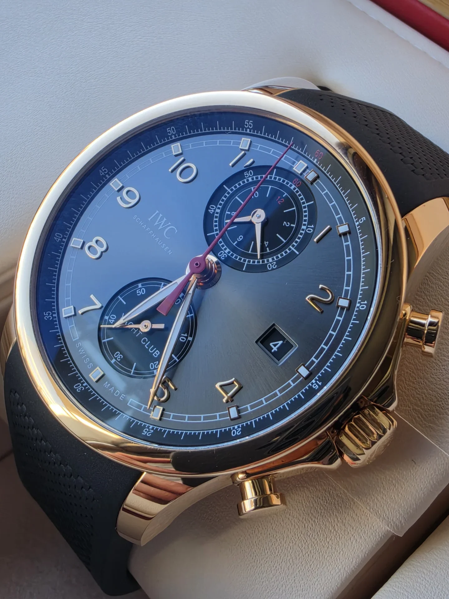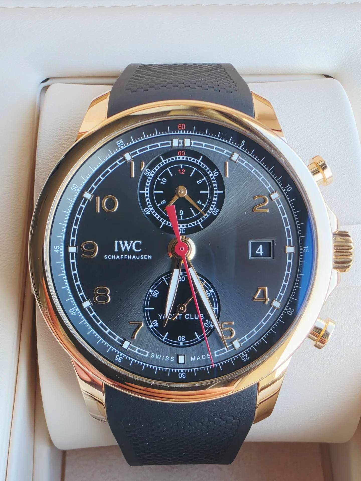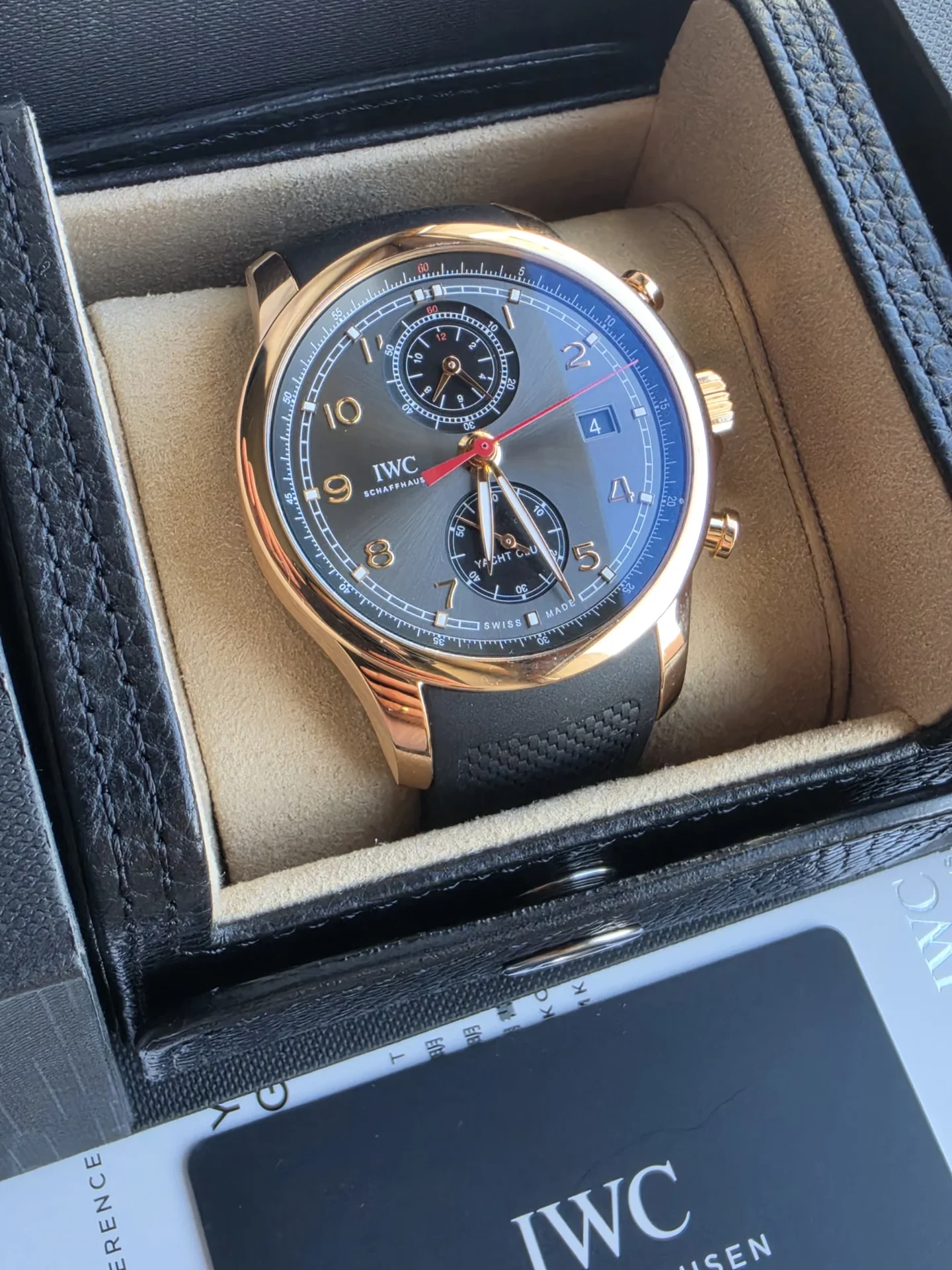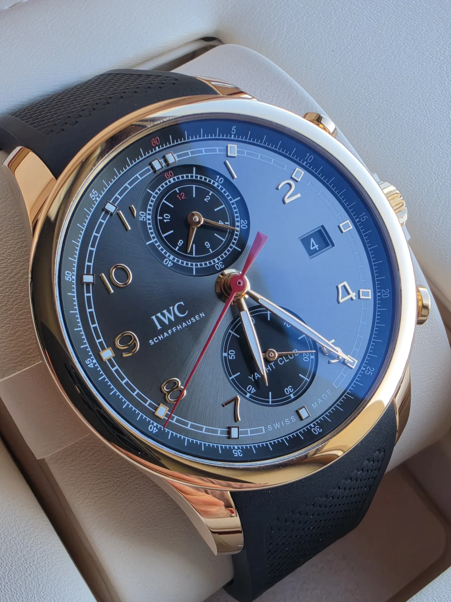 IWC Portugieser Yacht Club Chronograph IW390505 to propozycja dla mężczyzny aktywnego, który oczekuje od zegarka nie tylko elegancji, ale także realnej funkcjonalności i wytrzymałości. To nowoczesna interpretacja klasyki Portugieser — bardziej sportowa, ale wciąż wierna zasadom szwajcarskiego zegarmistrzostwa: precyzji, jakości i ponadczasowego stylu.