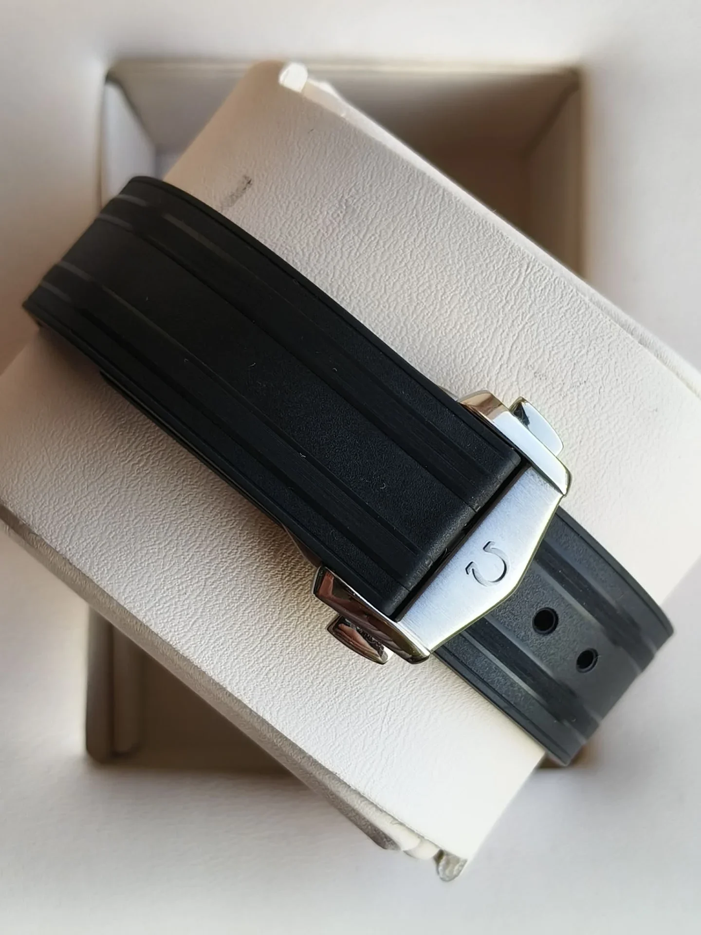 Model osadzono na kauczukowym pasku o sportowo-eleganckim charakterze, która doskonale integruje się z kopertą. Zapięcie motylkowe pozwala na szybkie i precyzyjne dopasowanie zegarka do nadgarstka, także podczas aktywności nurkowych.