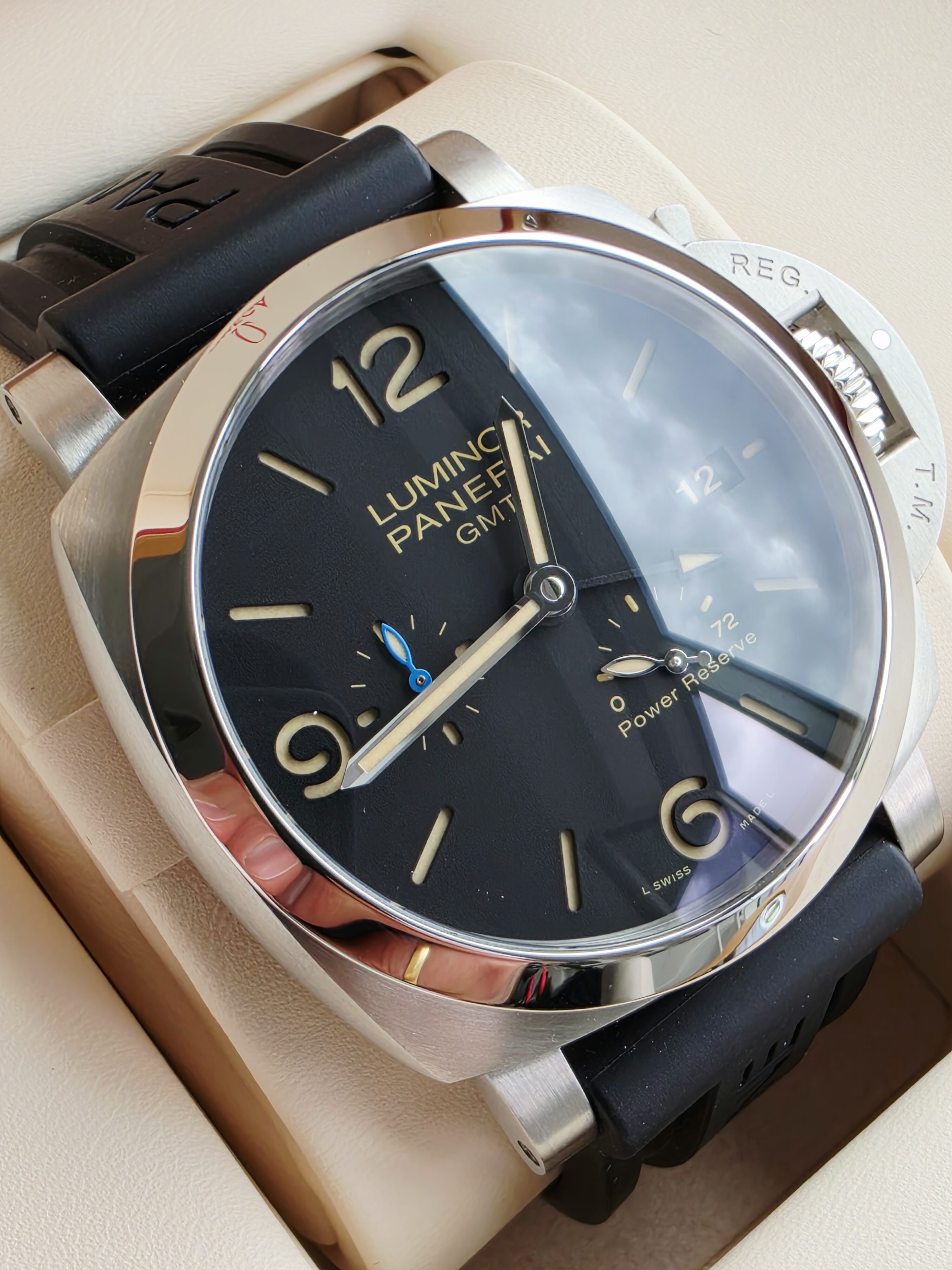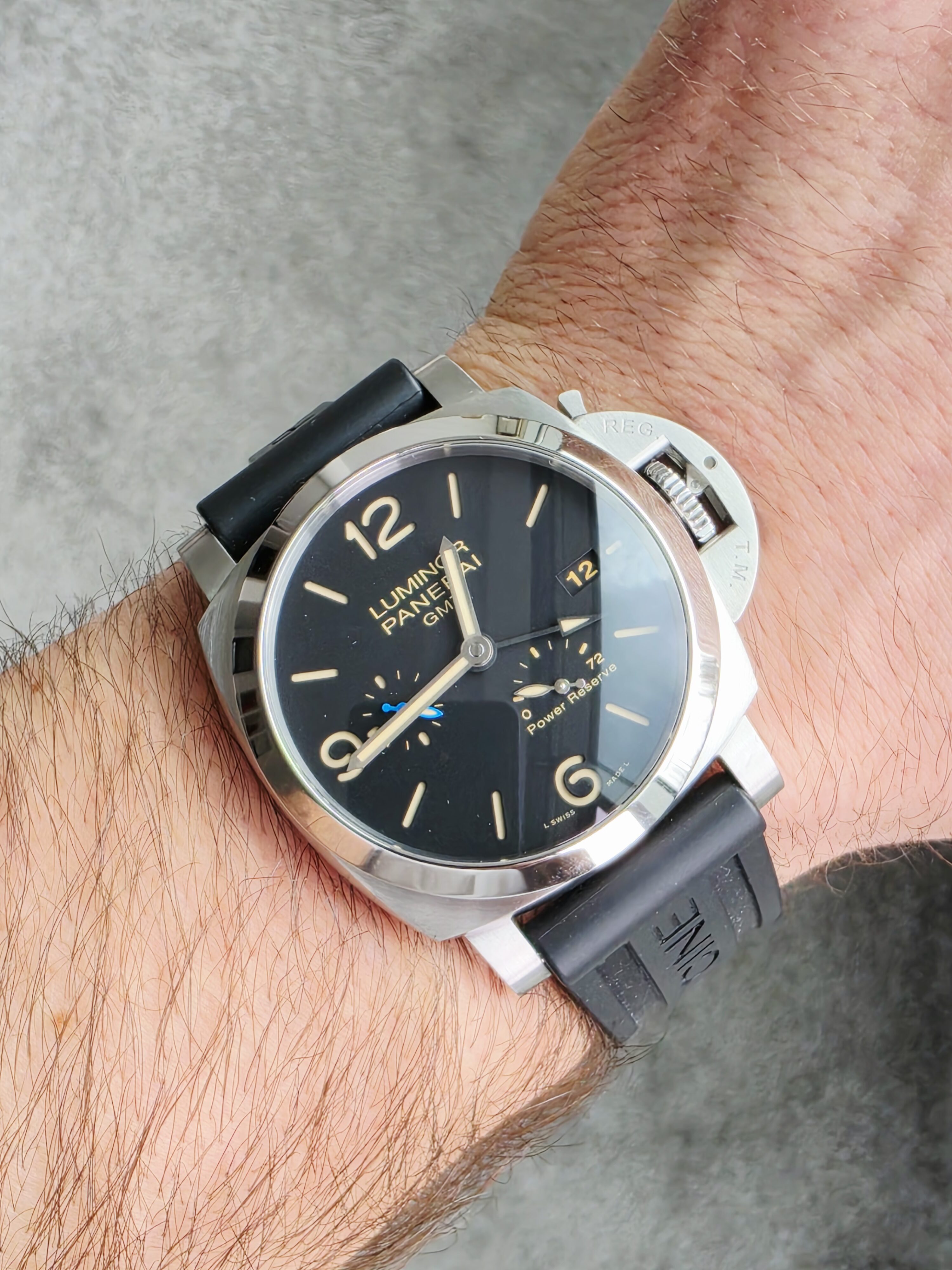 Panerai Luminor GMT Power Reserve PAM01321 to czasomierz dla mężczyzny, który poszukuje wyrazistego zegarka o silnym charakterze i praktycznych funkcjach. Surowy, czytelny i niezawodny — stanowi doskonałe połączenie wojskowego dziedzictwa, funkcjonalności GMT oraz nowoczesnej technologii, będąc jednocześnie jednym z najbardziej rozpoznawalnych modeli w portfolio marki Panerai.