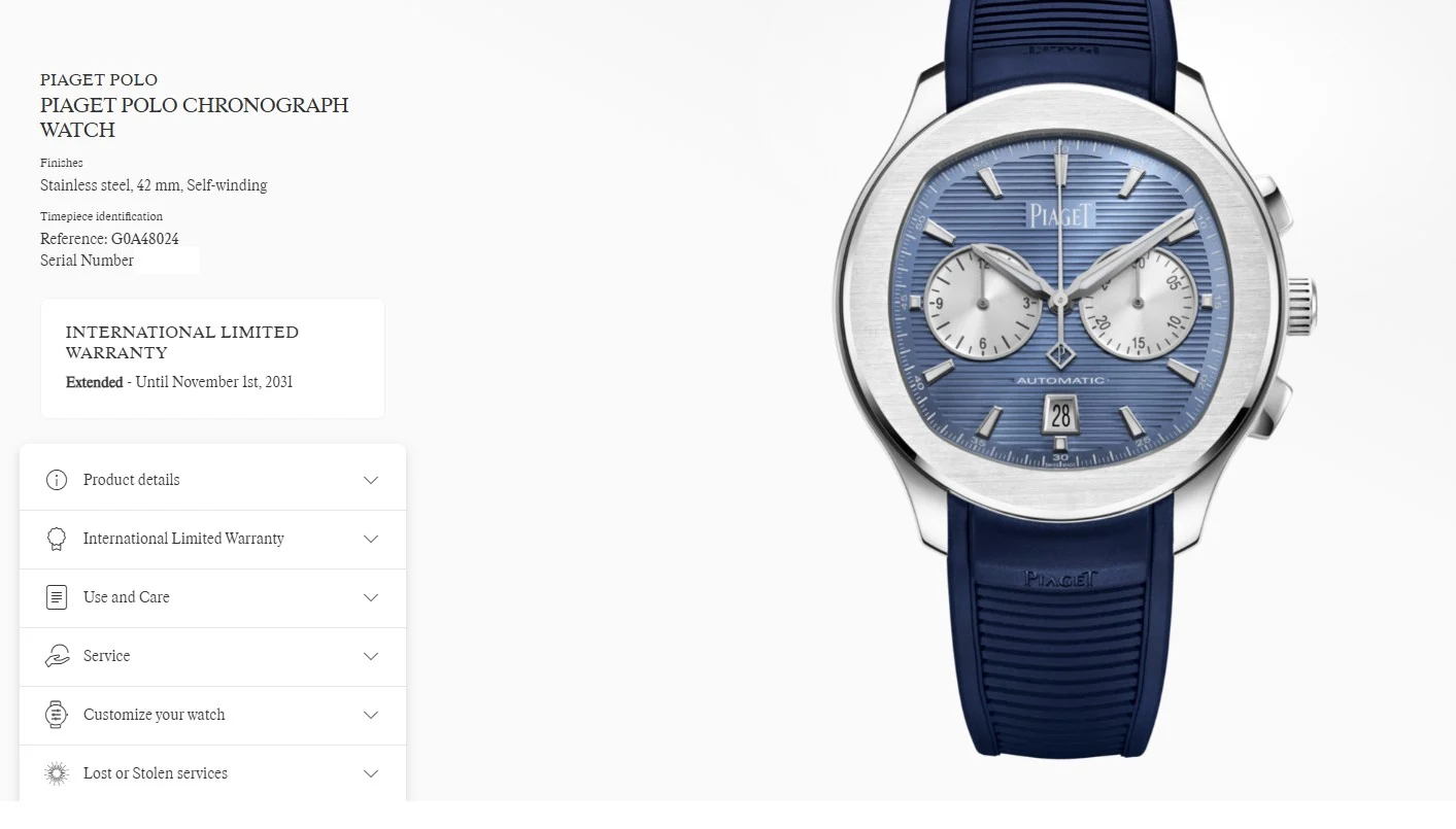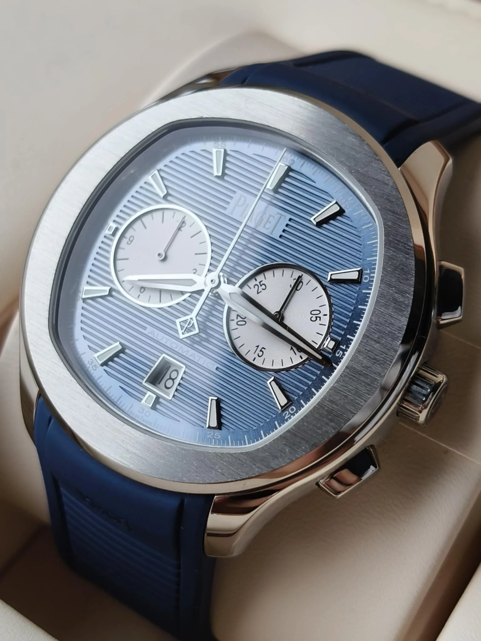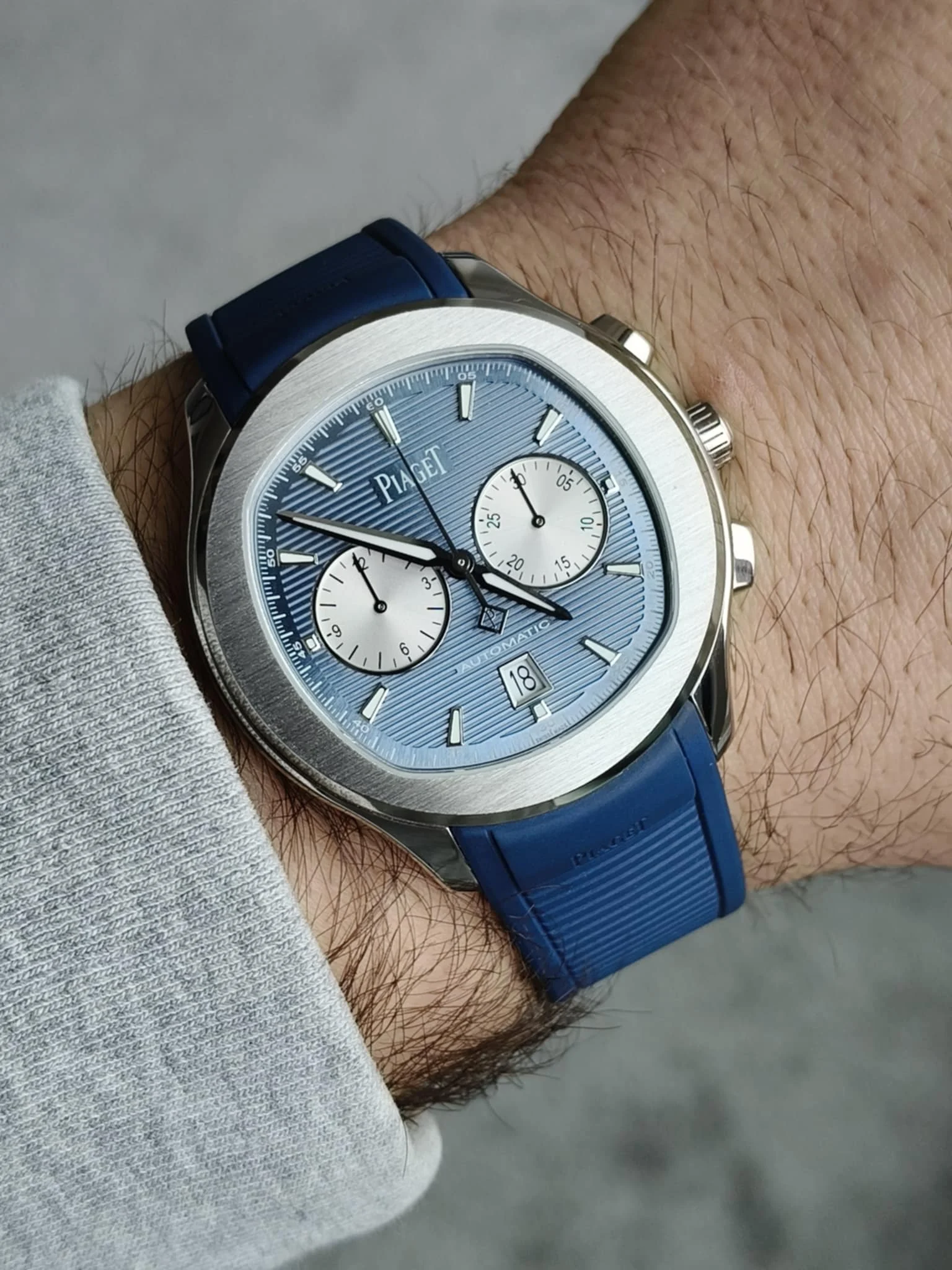 Piaget Polo Chronograph G0A48024 — wyrafinowana i sportowo-elegancka interpretacja luksusowego zegarka, łącząca wysmakowane wzornictwo z zaawansowaną funkcjonalnością chronografu. To propozycja dla mężczyzny, który oczekuje od czasomierza nie tylko precyzyjnych parametrów technicznych, ale też subtelnej elegancji i uniwersalnego stylu, który równie dobrze sprawdza się przy garniturze, jak i w weekendowej stylizacji.