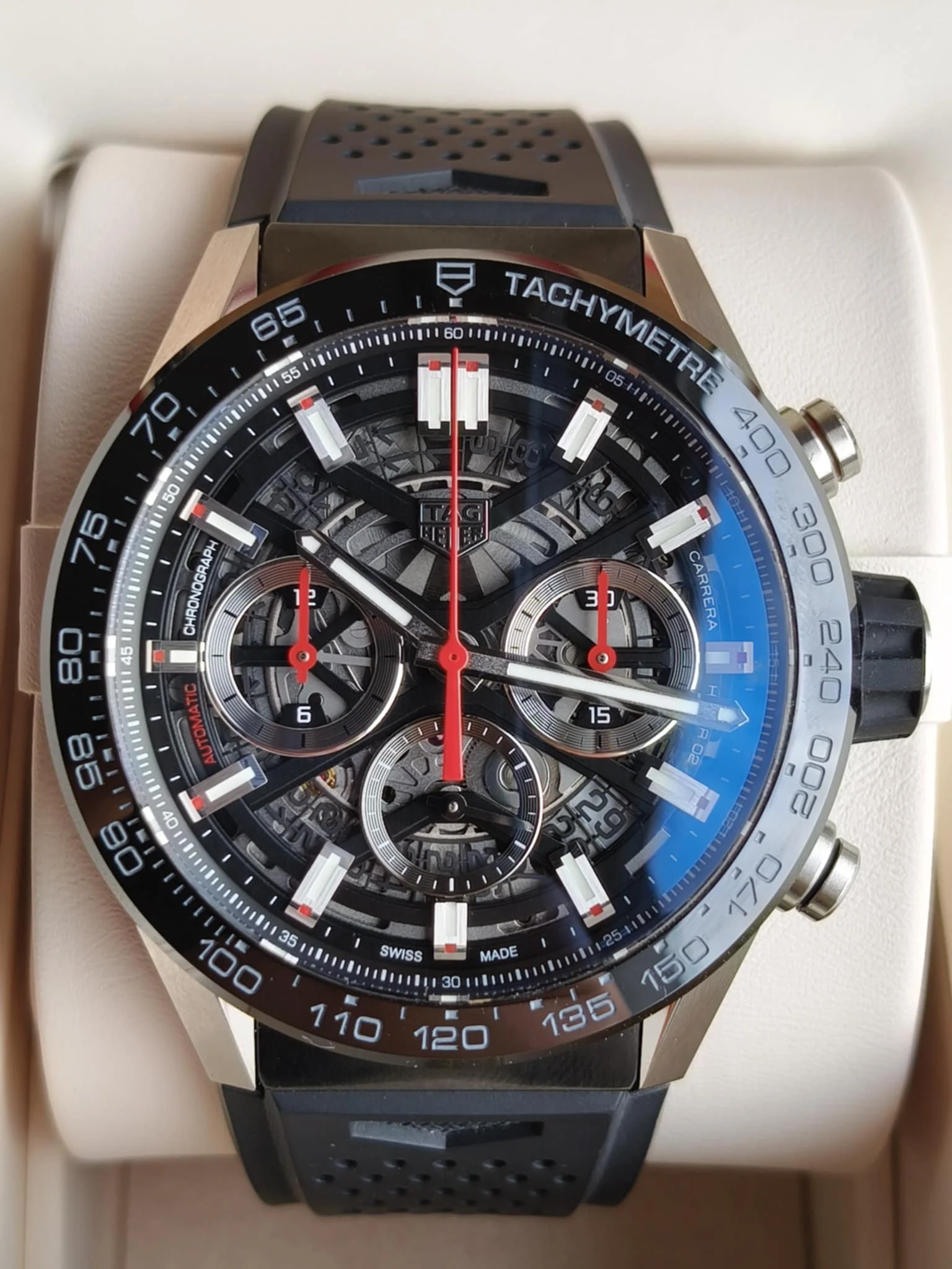 TAG Heuer Carrera Calibre Heuer 02 CBG2010.FT6143 to zegarek dla mężczyzny, który ceni sobie zaawansowaną technologię, precyzyjny mechanizm chronografu i nowoczesny design. To narzędzie o sportowo-eleganckim charakterze, które robi wrażenie zarówno w codziennym użytkowaniu, jak i podczas bardziej formalnych okazji.