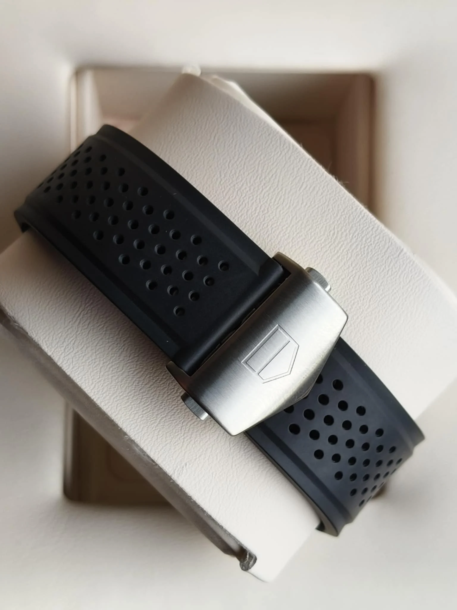 Model wyposażono w kauczukowy pasek, która łączy komfort noszenia z dynamicznym, sportowym wyglądem, doskonale współgrając z kopertą i podkreślając uniwersalny styl zegarka.