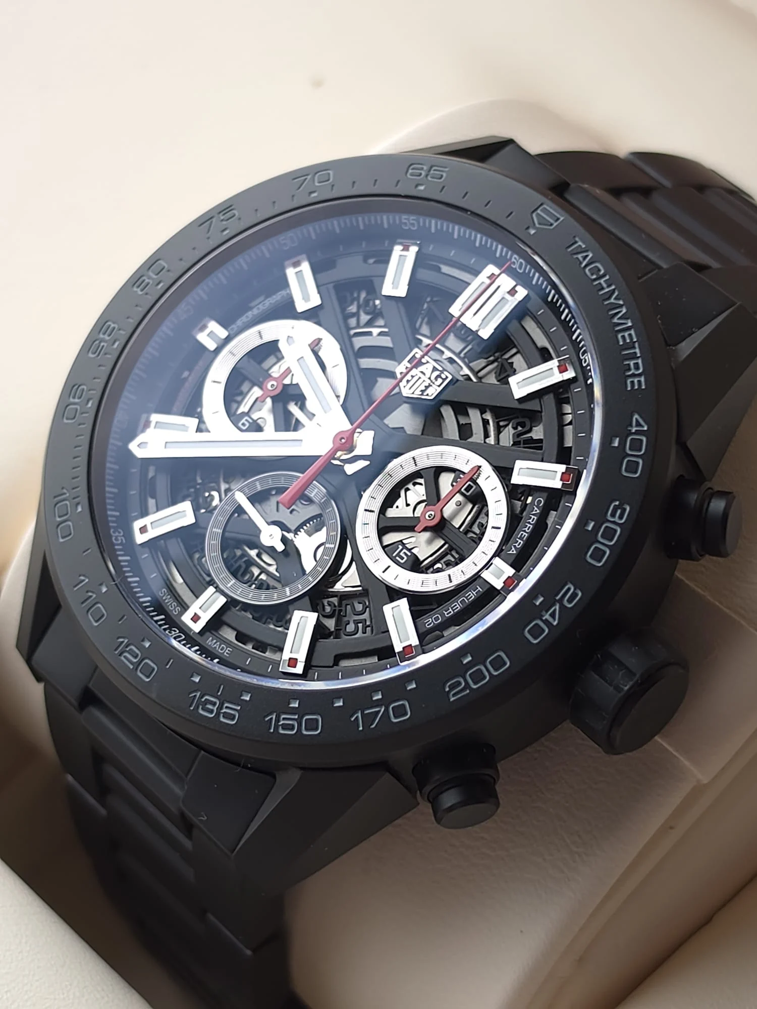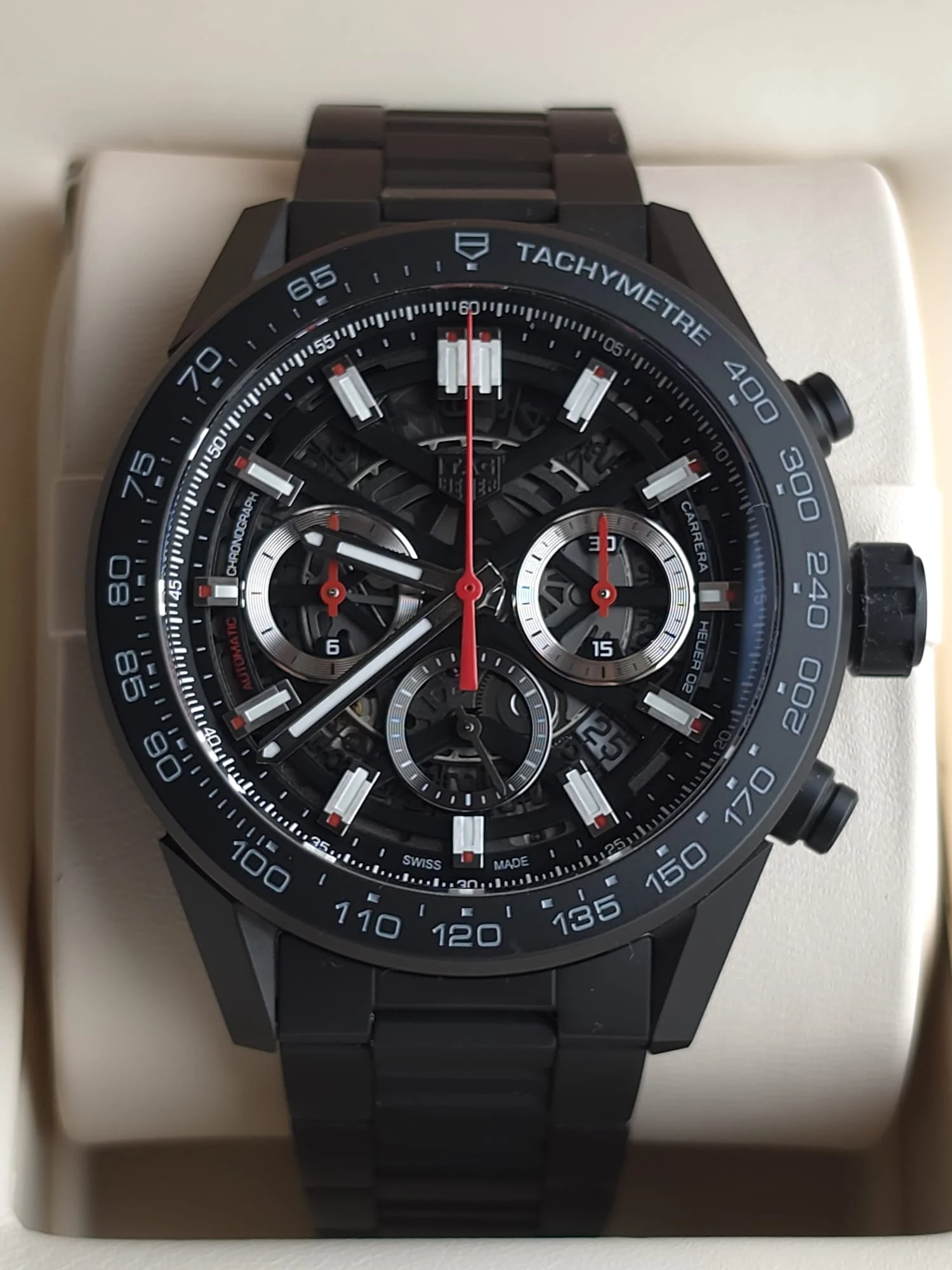TAG Heuer Carrera Calibre Heuer 02 to czasomierz dla mężczyzny, który oczekuje czegoś więcej niż klasyczny chronograf. Nowoczesny, precyzyjny i wizualnie spektakularny — łączy dziedzictwo legendarnej linii Carrera z innowacyjnym podejściem do designu i zegarmistrzowskiej technologii.