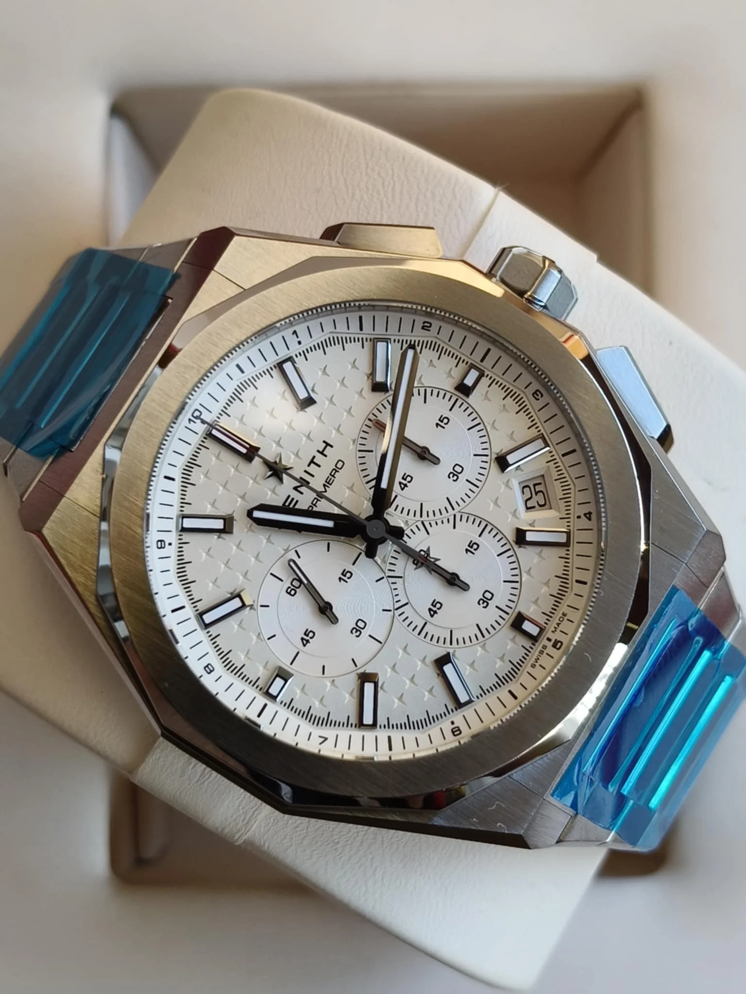 Tudor Black Bay Chrono “Carbon 25” M79377KN‑0001 to czasomierz, który uosabia pasję do prędkości, inżynierską doskonałość i nowoczesny design — bez kompromisów. Ten limitowany model, powstały w hołdzie sezonowi wyścigowemu 2025 oraz partnerskiej współpracy z Visa Cash App Racing Bulls w Formule 1, jest manifestacją sportowego charakteru i technicznego wyrafinowania, gotową zarówno na tor, jak i na nadgarstek kolekcjonera. Koperta o średnicy 42 mm wykonana niemal w całości z wysokowydajnej włókna węglowego to esencja lekkości i wytrzymałości — materiał ten nie tylko nadaje zegarkowi charakteru, ale również obniża jego wagę, zwiększając komfort noszenia. Carbonowe ogniwa łączące kopertę ze strapem oraz karbonowy bezel z grawerowaną skalą tachymetru wzmacniają wyścigowy charakter projektu. Tarcza „Racing White” to jasne tło o domkniętym profilu, kontrastujące z czarnymi, świetlistymi subtarczami i indeksami, które dzięki wypełnieniu materiałem luminescencyjnym gwarantują doskonałą czytelność w każdych warunkach. Układ wskazań — z licznikiem 45-minutowym, małą sekundą oraz datą na godzinie 6 — to harmonijne połączenie funkcjonalności i dynamiki. W sercu zegarka bije manufakturowy kaliber MT5813 — automatyczny mechanizm z konstrukcją kolumnowego koła sterującego chronografem, pionową sprzęgłą i sprężyną balansu z krzemem. Dzięki certyfikacji COSC oraz rezerwie chodu około 70 godzin, mechanizm ten oferuje precyzję i niezawodność, które sprawdzą się zarówno w codziennym użytkowaniu, jak i podczas dłuższych przygód. Całość dopełnia hybrydowy pasek z skóry i gumy o wzorze przypominającym bieżnik opony wyścigowej — element, który podkreśla sportowy rodowód zegarka i zapewnia wyjątkowy komfort noszenia. Zapięcie oraz wodoodporność do 200 m zwiększają praktyczność, czyniąc ten model gotowym na każdą sytuację. Limitowany do 2 025 egzemplarzy, każdy zegarek ma indywidualny numer wygrawerowany na tytanowym, pokrytym PVD deklu — to szczegół, który podkreśla jego unikatowość i kolekcjonerski charakter. Tudor Black Bay Chrono “Carbon 25” to zegarek dla mężczyzny, który ceni techniczne innowacje, wyraźny styl i odwagę projektowania. To model, który łączy sportową energię wyścigów z czystą funkcjonalnością chronografu — idealny zarówno jako towarzysz codziennych wyzwań, jak i jako perła w kolekcji zegarków z duszą motorsportu.