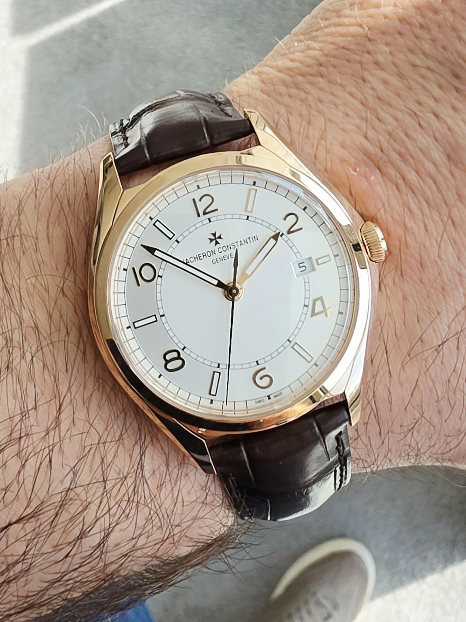 Koperta o średnicy 40 mm została wykonana z 18-karatowego różowego złota, a jej elegancka sylwetka podkreśla harmonijne połączenie polerowanych powierzchni i subtelnych krzywizn. Smukły profil o grubości około 9,6 mm sprawia, że zegarek doskonale układa się na nadgarstku i bez trudu mieści się pod mankietem koszuli. Transparentny dekiel z szafirowego szkła pozwala podziwiać mechanizm oraz dekoracyjny rotor inspirowany krzyżem maltańskim — symbolem marki.