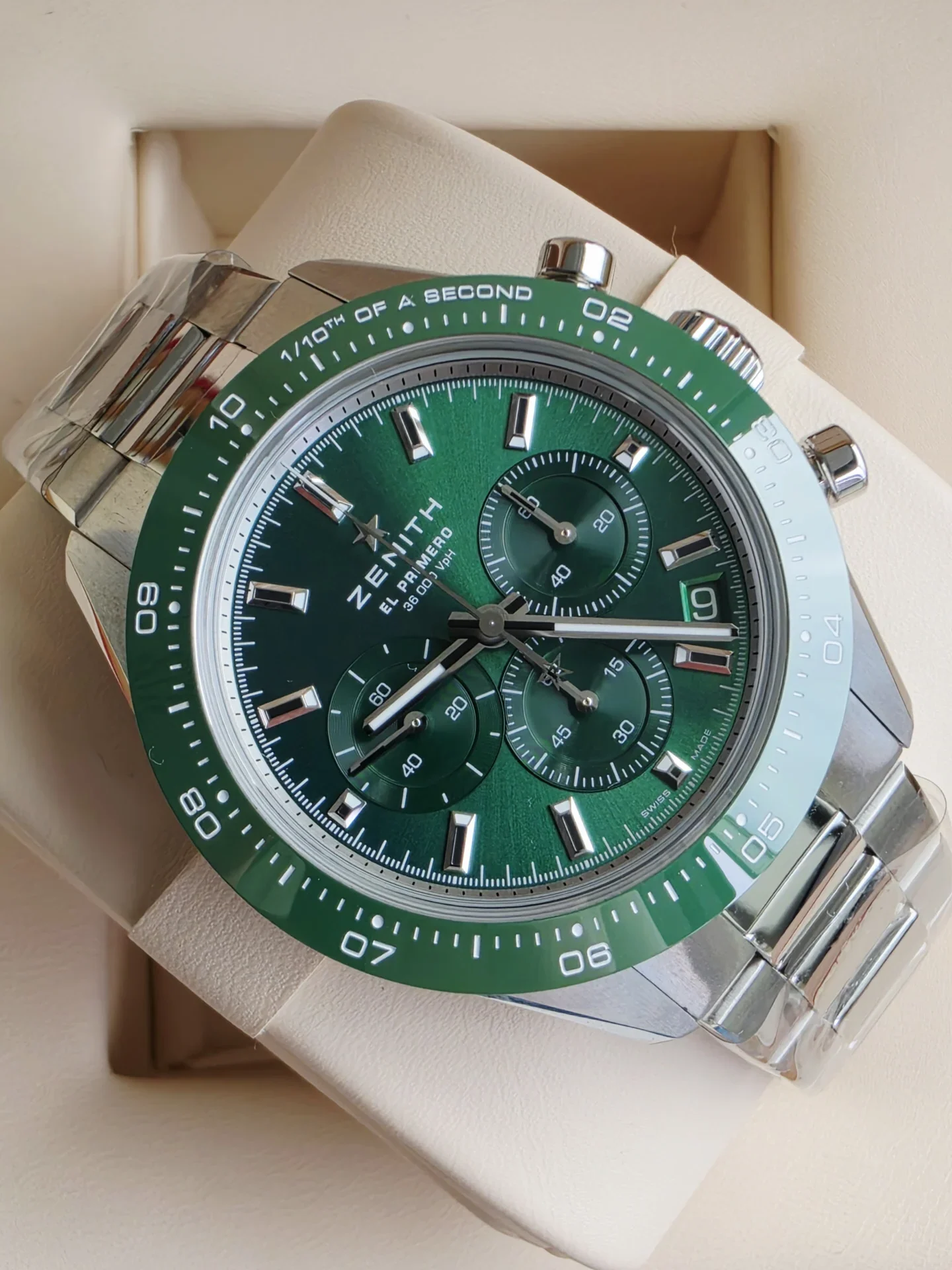 W jego wnętrzu pracuje legendarny kaliber El Primero 3604 — nowoczesna odsłona jednego z najbardziej ikonicznych mechanizmów chronografu w historii zegarmistrzostwa. Mechanizm umożliwia pomiar czasu z dokładnością do 1/10 sekundy, a wskazówka chronografu wykonuje pełny obrót w ciągu 10 sekund, podkreślając dynamiczny charakter modelu. 60-godzinna rezerwa chodu i precyzja wysokiej częstotliwości czynią z niego serce, które bije szybciej — ale zawsze w pełnej kontroli.