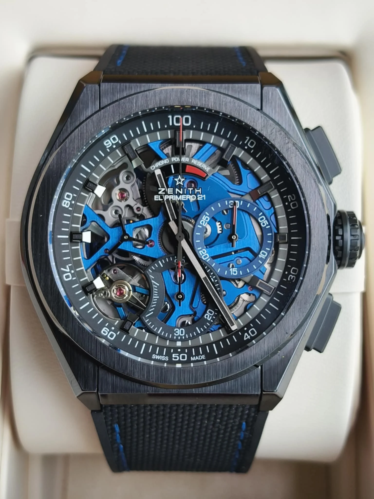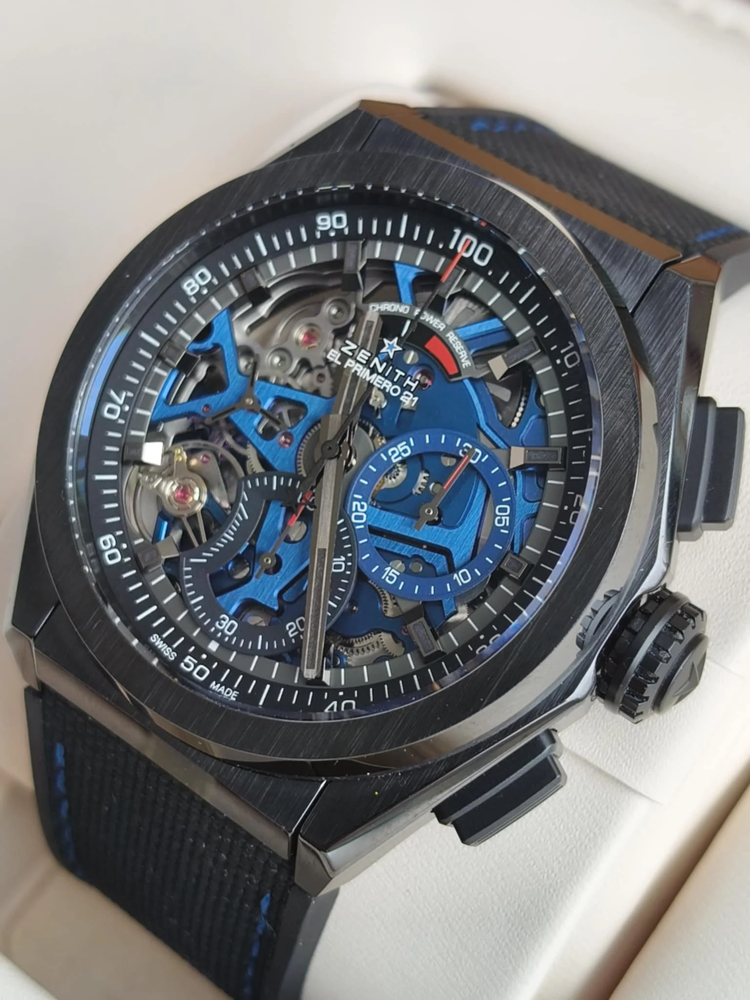 Zenith Defy El Primero 21 Boutique Edition to zegarek, który łączy w sobie technologiczną odwagę, mistrzowskie zegarmistrzostwo i futurystyczny design. Otwarta konstrukcja i spektakularny mechanizm czynią go jednym z najbardziej interesujących chronografów współczesnej horologii — idealnym jako centralny element kolekcji, jak i jako codzienny towarzysz osób ceniących innowację i dynamikę w luksusowej formie.