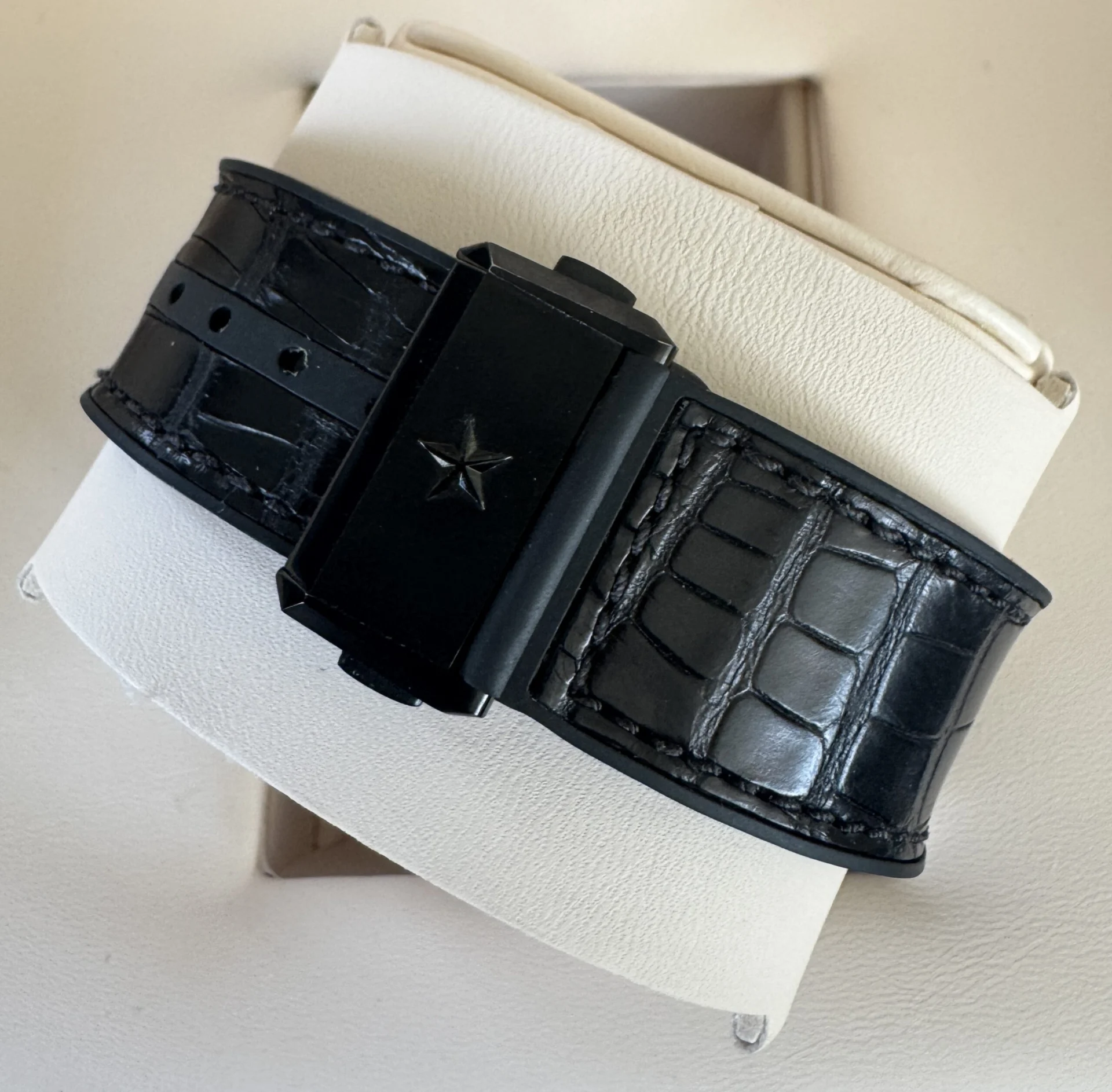44 mm wykonana z czarnej ceramiki emanuje głębokim, matowym